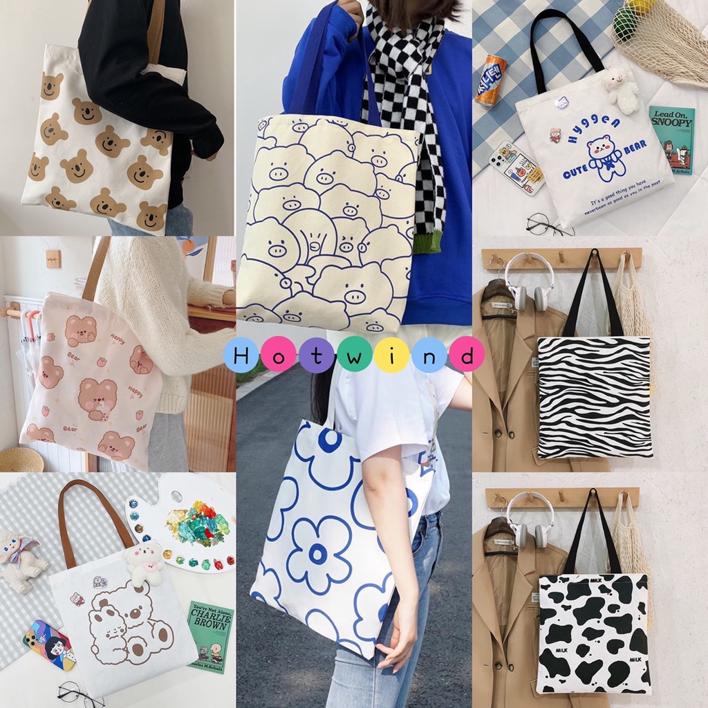 Hotwind (พร้อมส่ง) กระเป๋าผ้าแคนวาสแฟชั่นสไตล์เกาหลีสุดฮิต NO.TUAN2