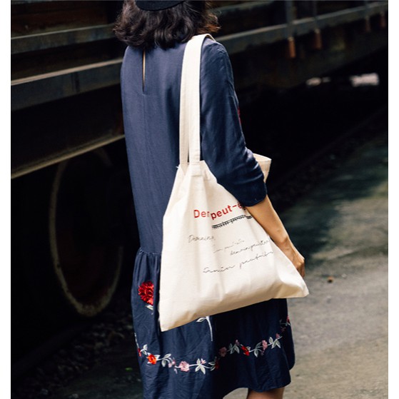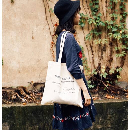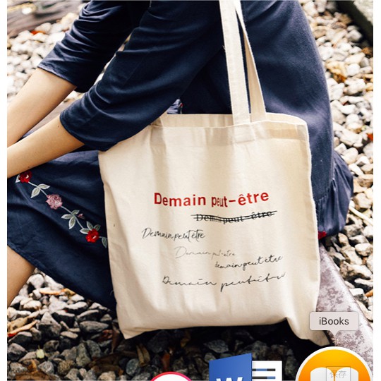 hotwind พร้อมส่ง• กระเป๋าผ้าแคนวาส กระเป๋าสะพาย สไตล์เกาหลี NO.Demain
