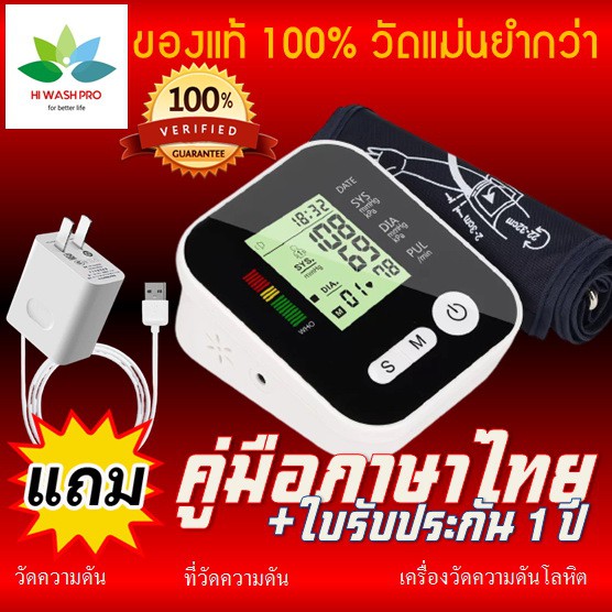 [ฟรีส่ง] ที่วัดความดัน แถม หัวต่อไฟบ้าน มีคู่มือไทย พร้อมใบรับประกัน 1 ปี Blood Pressure Monitor