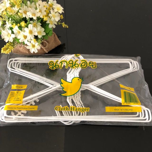 ไม้แขวนเสื้อ สีขาว มินิมอล ไม้แขวนผ้า ลวดหุ้มพลาสติกอย่างดี แพ็คละ 12 ชิ้น #นกน้อยสีขาว