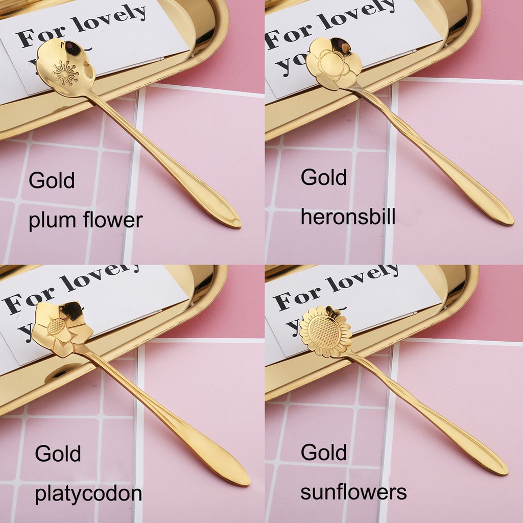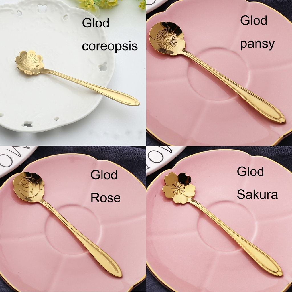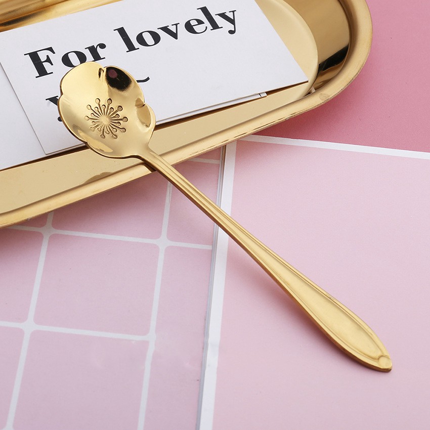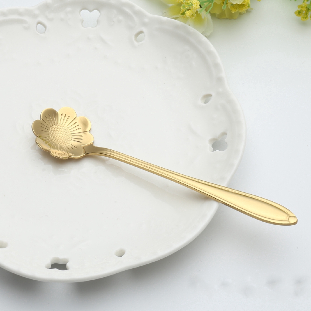 ช้อนกาแฟ ลายดอกไม้ สีทอง ขนาด 13 ซม.