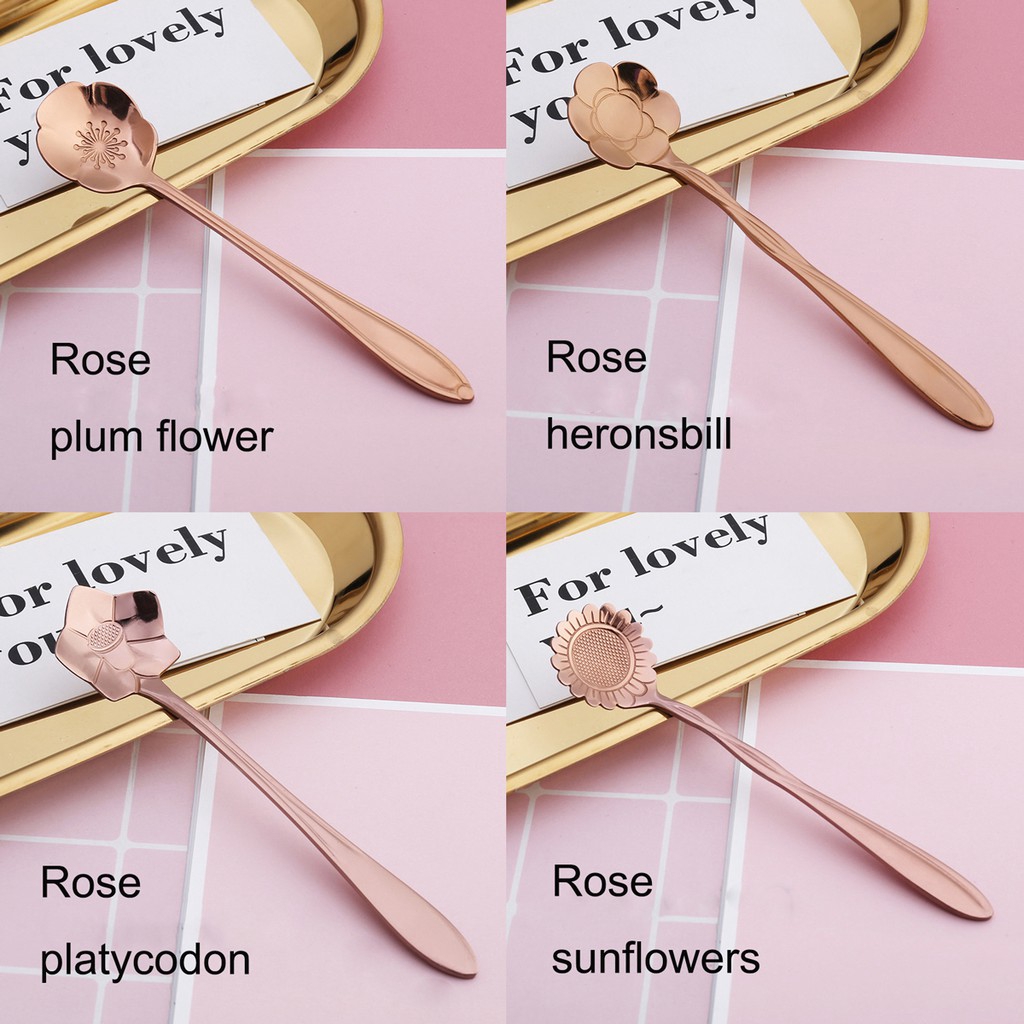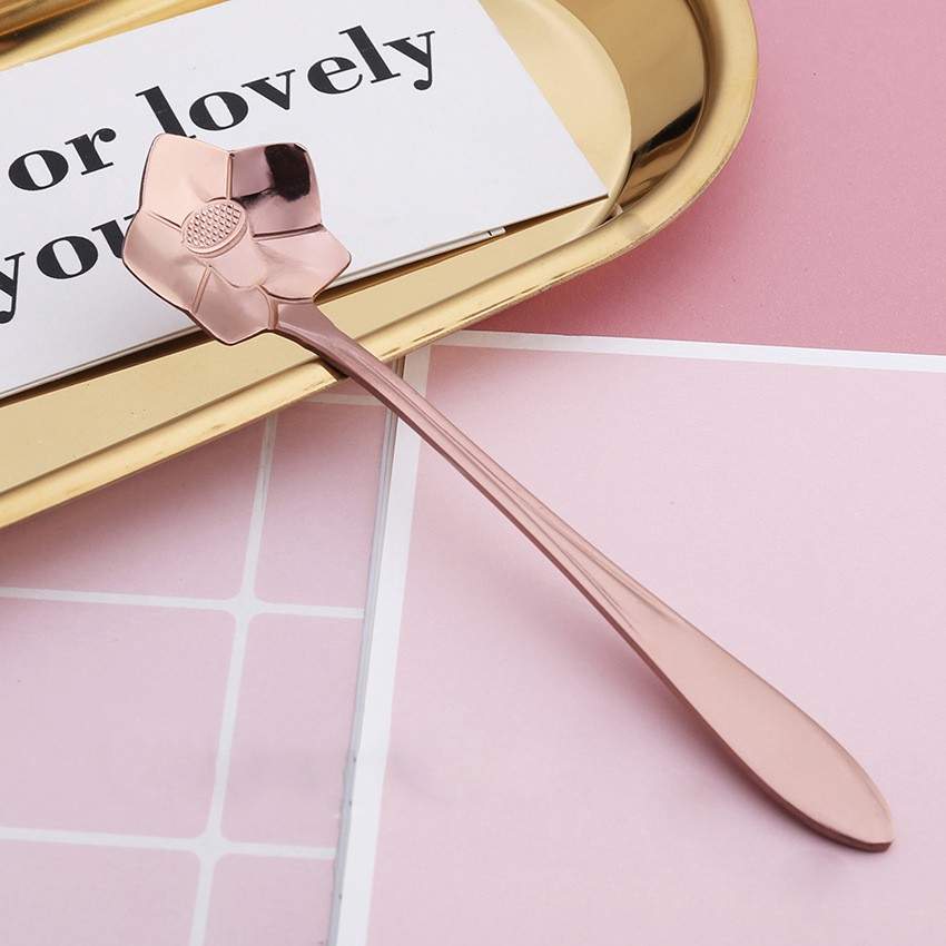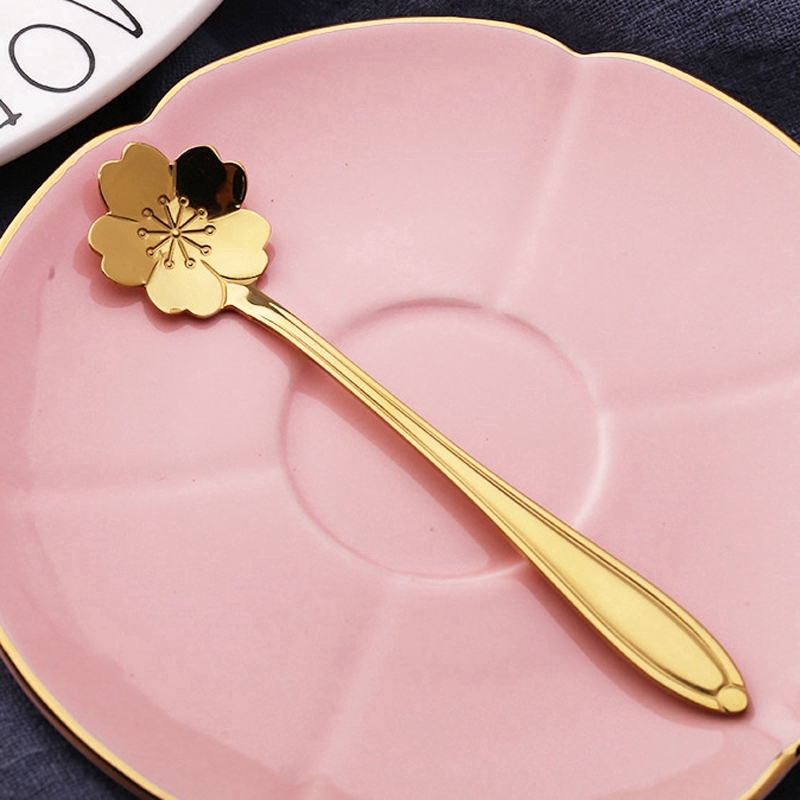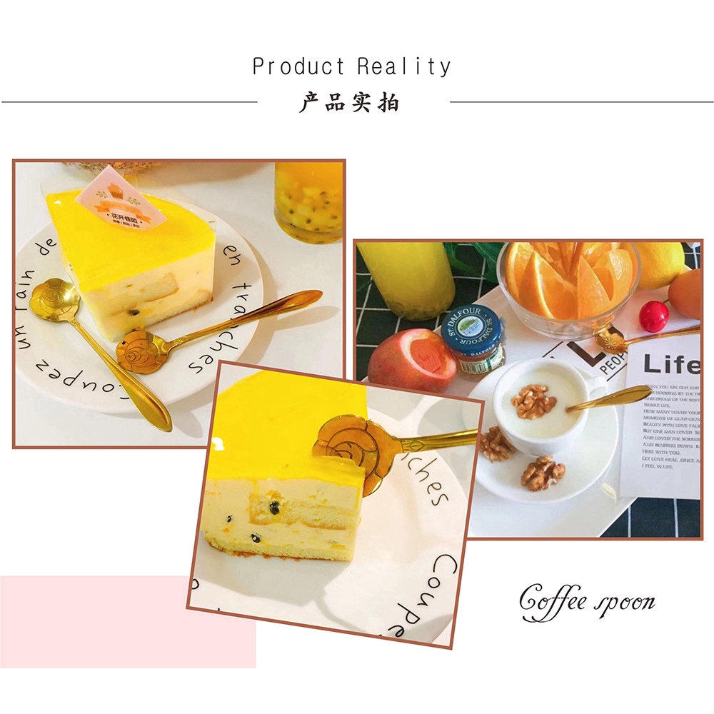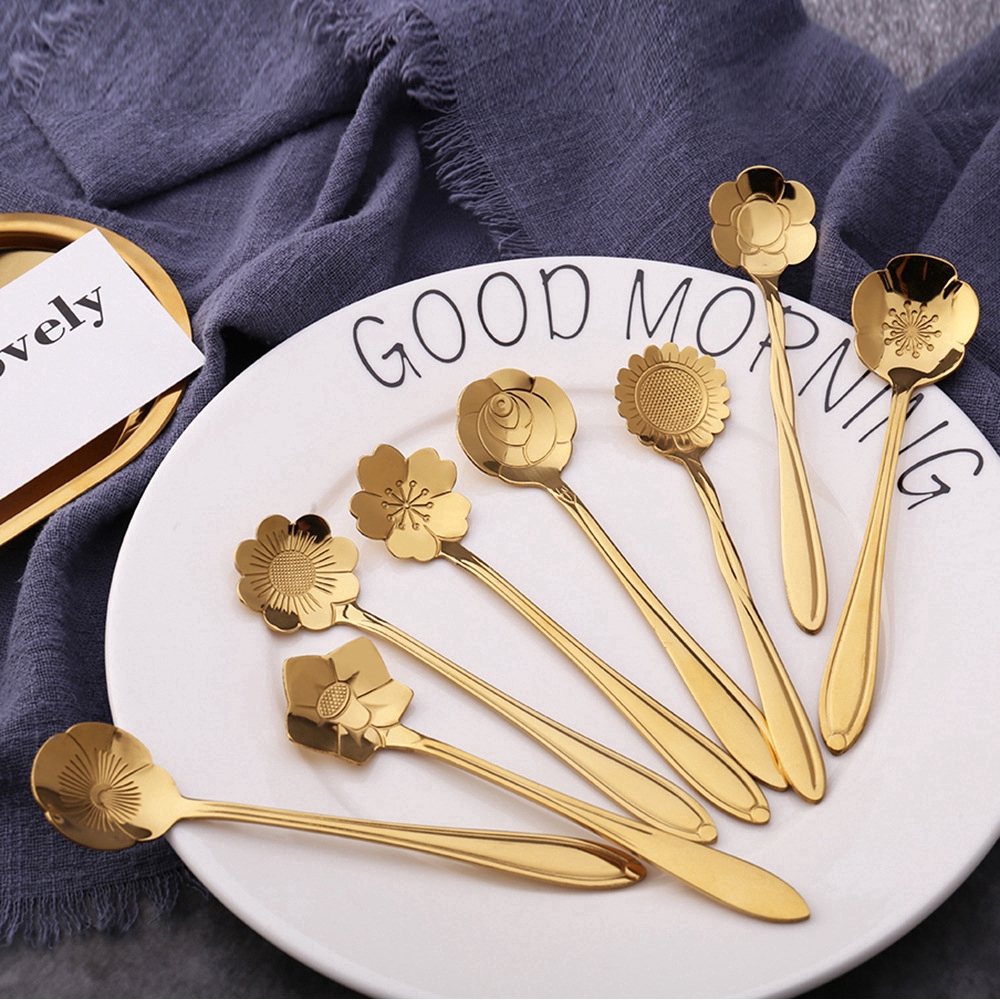 ช้อนกาแฟ ลายดอกไม้ สีทอง ขนาด 13 ซม.