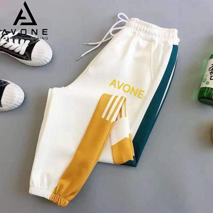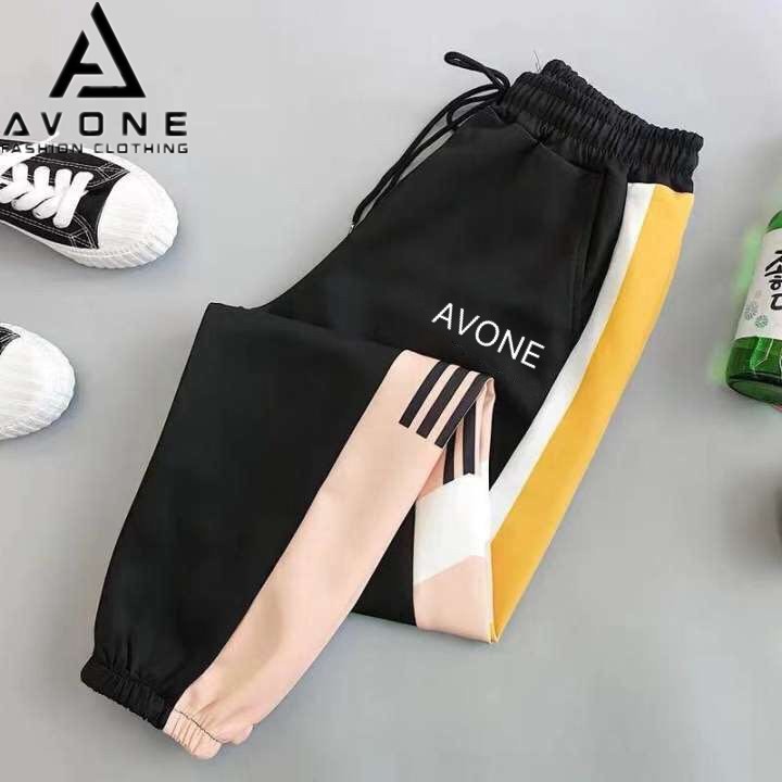 AVONE แฟชั่นผู้หญิงสบาย ๆ กางเกงขายาว เอวยางยืด แต่งแถบข้าง รุ่น KJ888-022