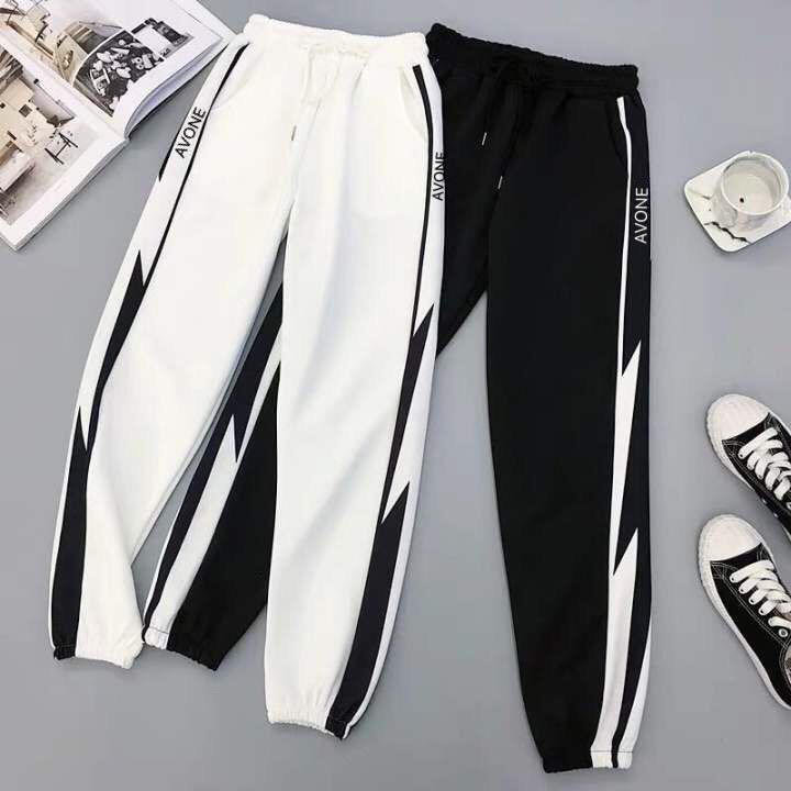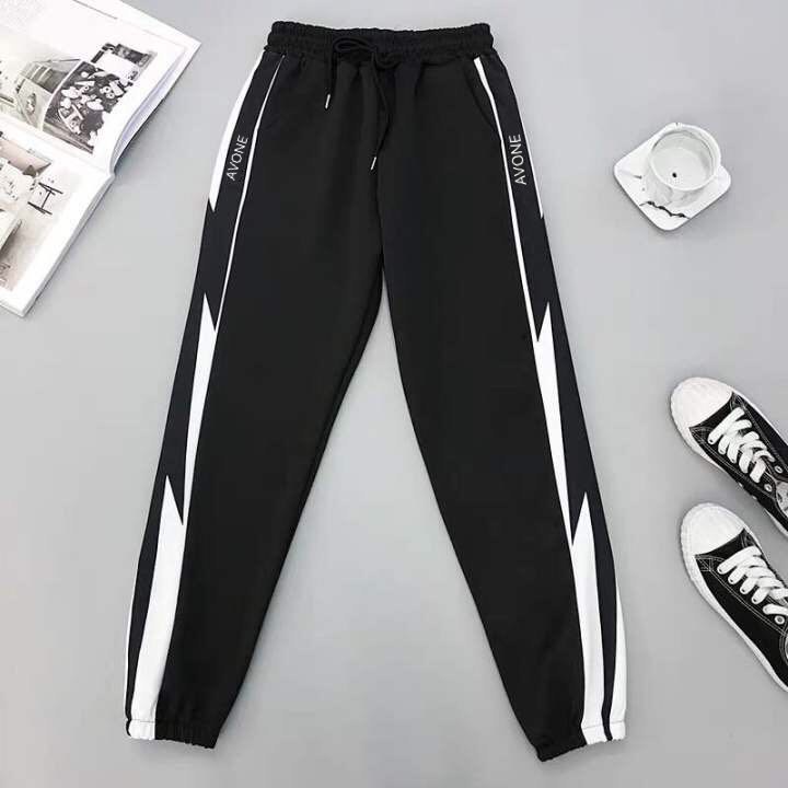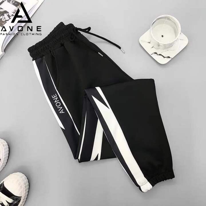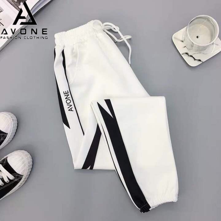 AVONE แฟชั่นผู้หญิงสบาย ๆ กางเกงขายาว เอวยางยืด แต่งแถบข้าง KJ888-031