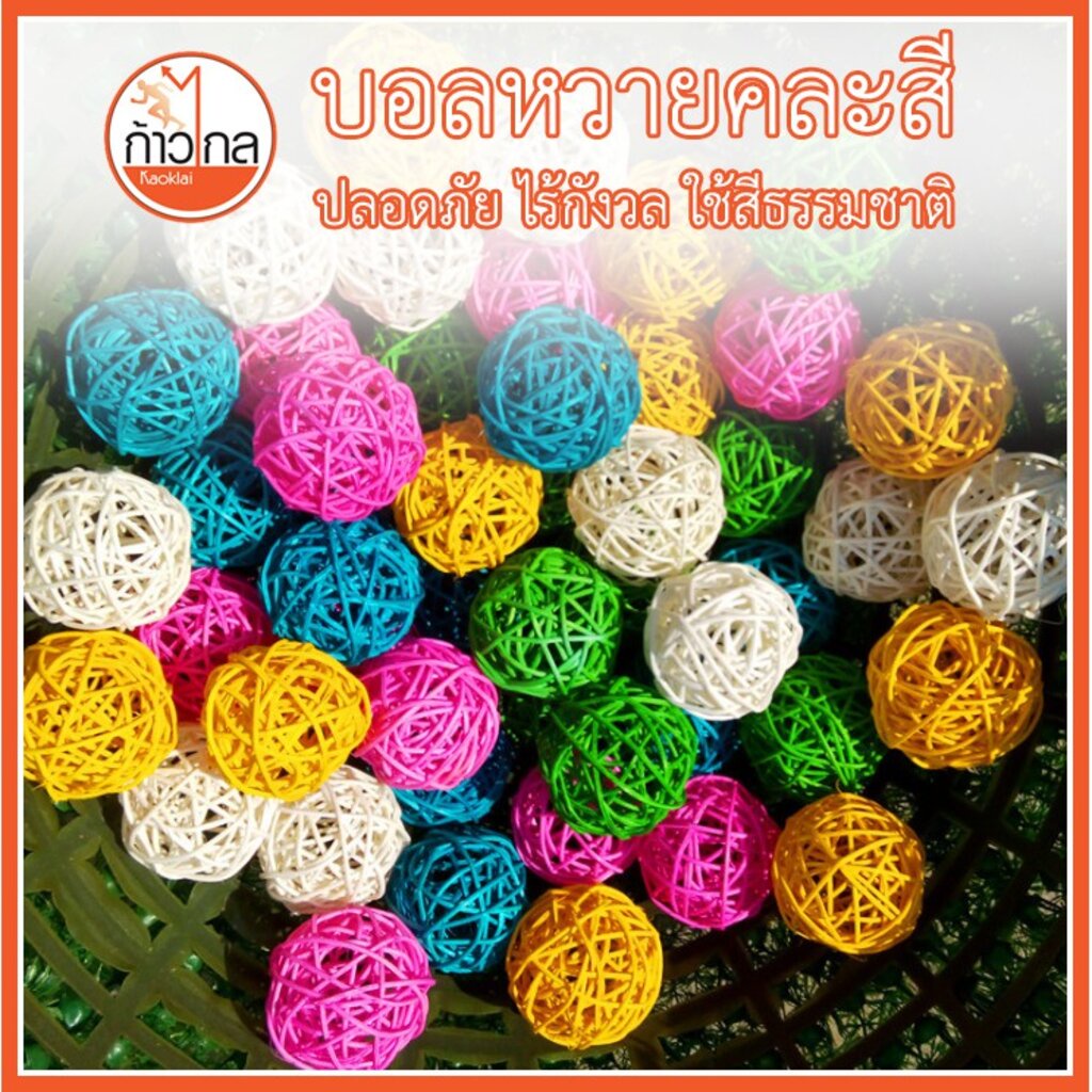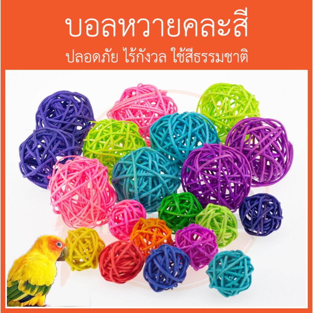 ลูกบอลหวายคละสี ของเล่นนก 3-5 cm นกแก้ว บอลนกแก้ว