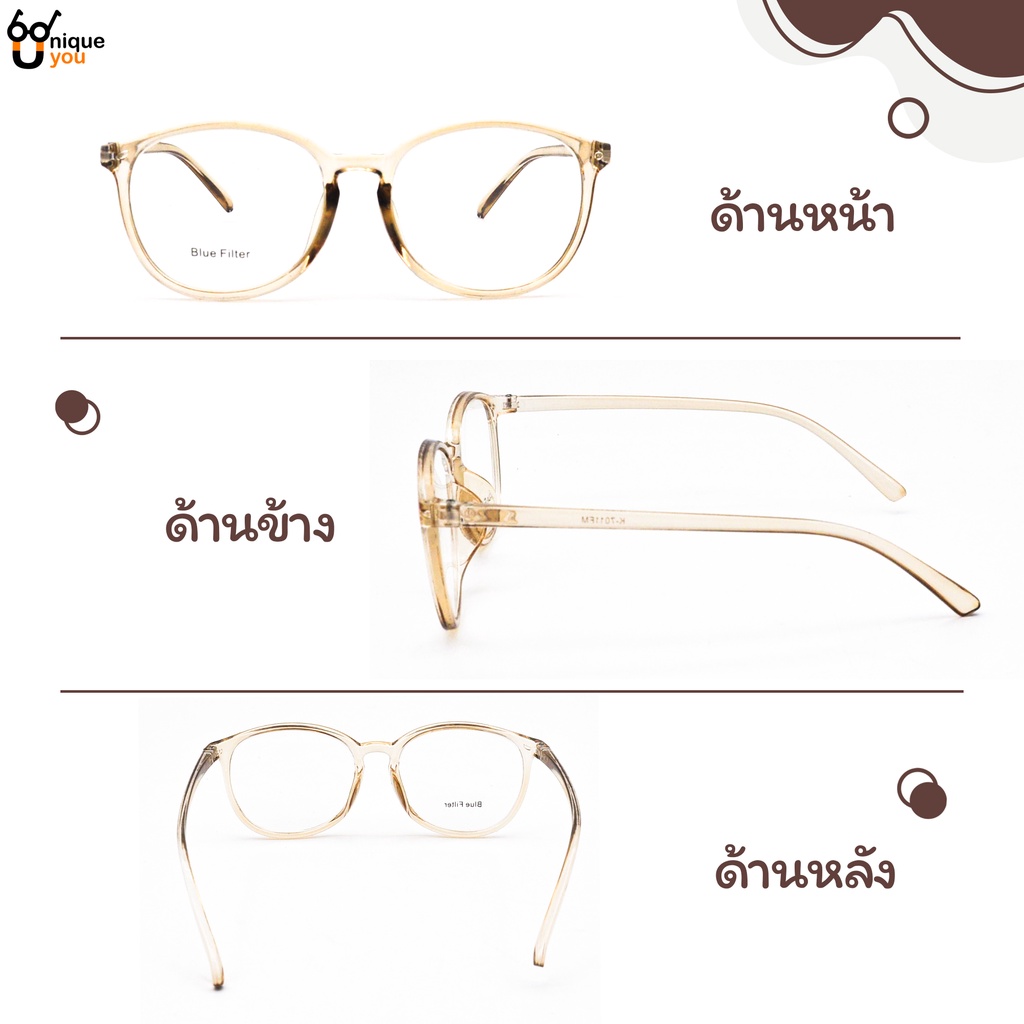 UniqueYou แว่นสายตาสั้น เลนส์บลูบล๊อค Blue Filter เลนส์ชัด น้ำหนักเบา 7011