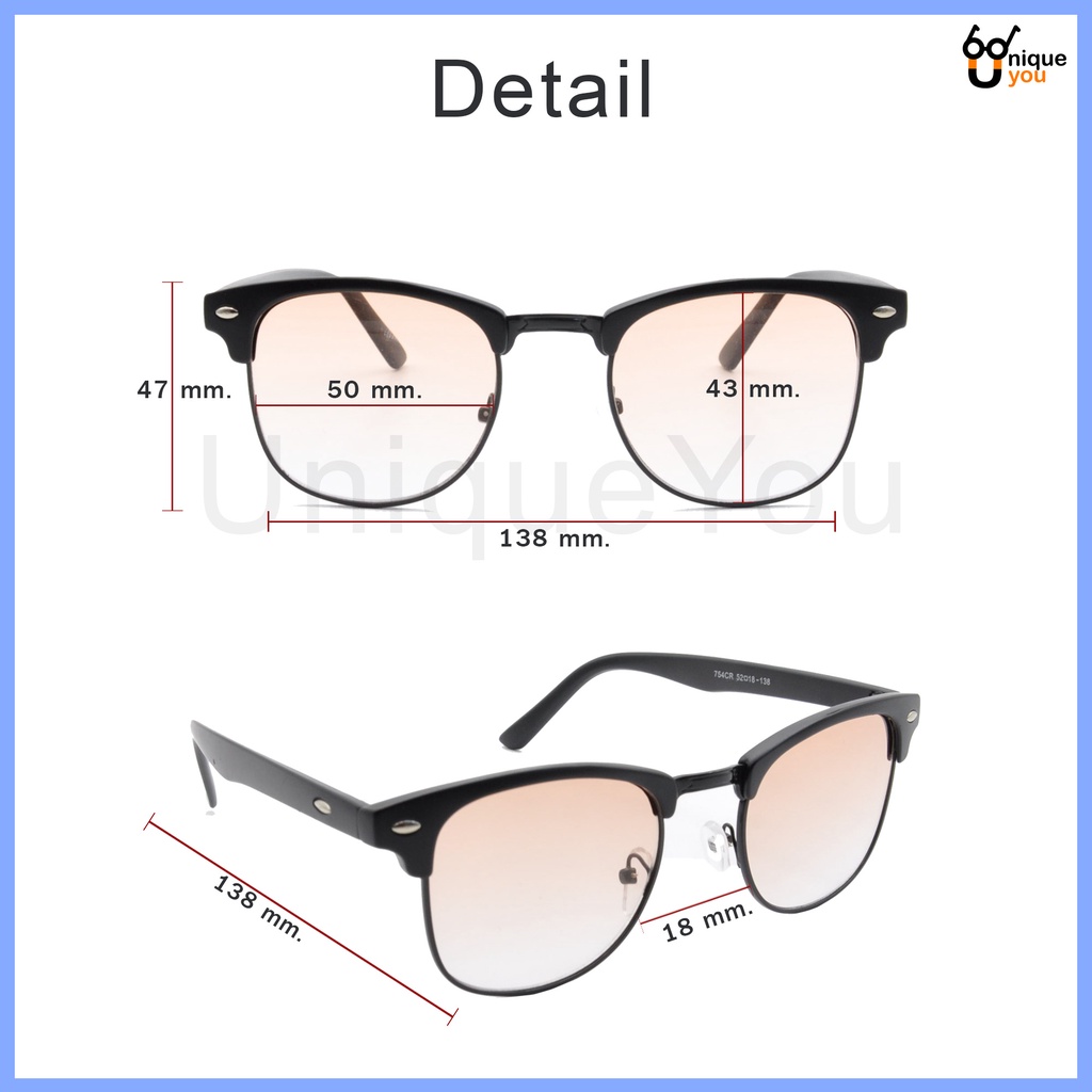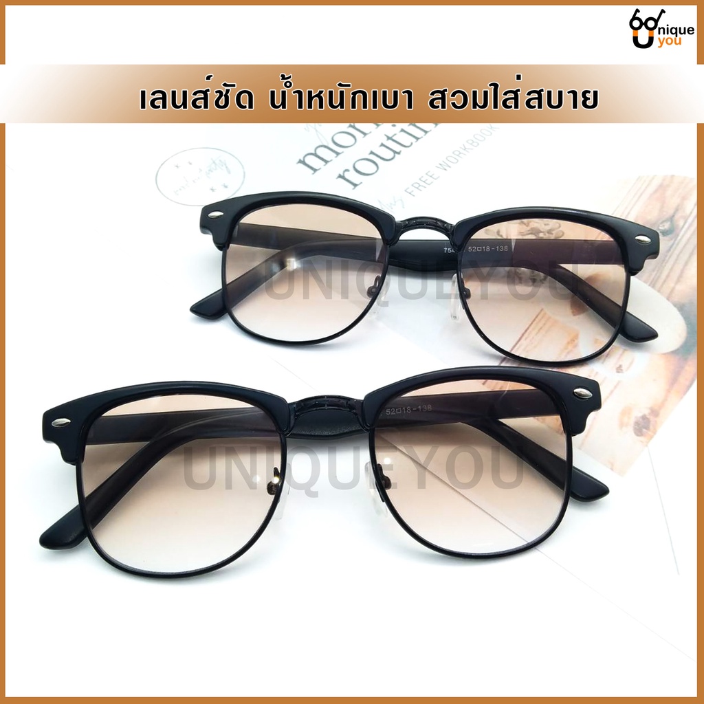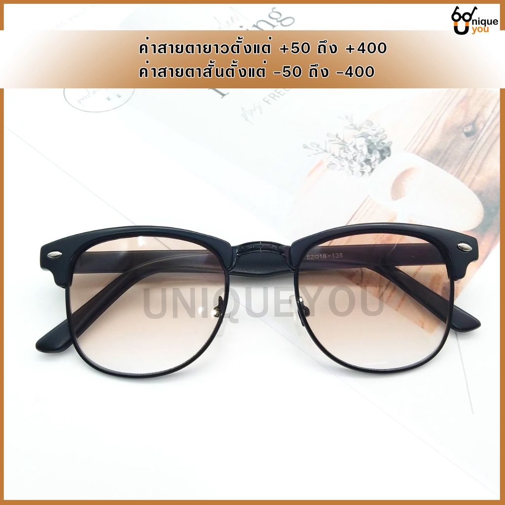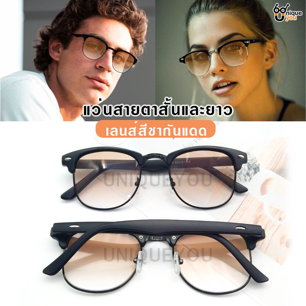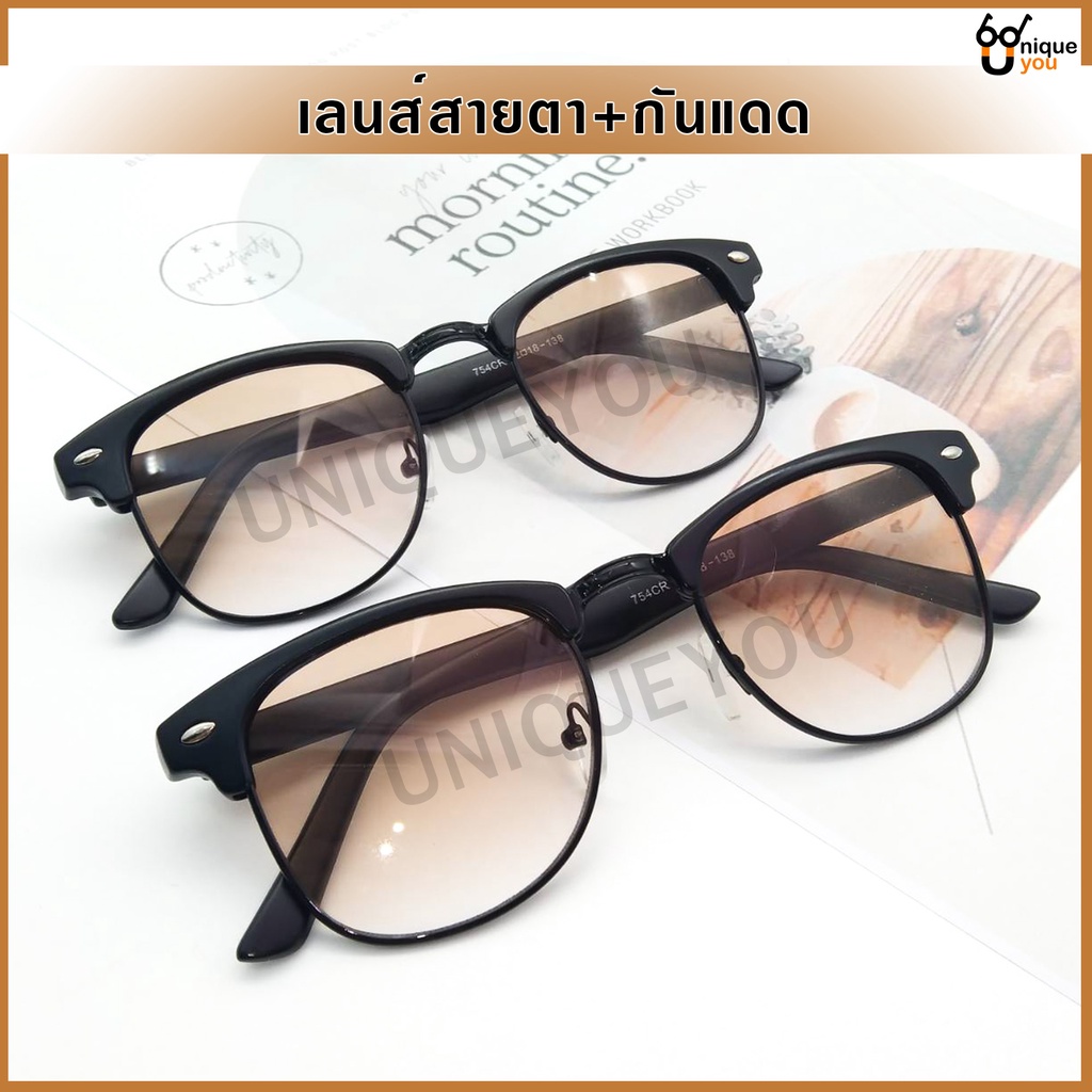 UniqueYou แว่นสายตาสั้นกันแดด เลนส์กันแดด เลนส์สีชา ทรงคลับมาสเตอร์ ส่งจากไทย 754