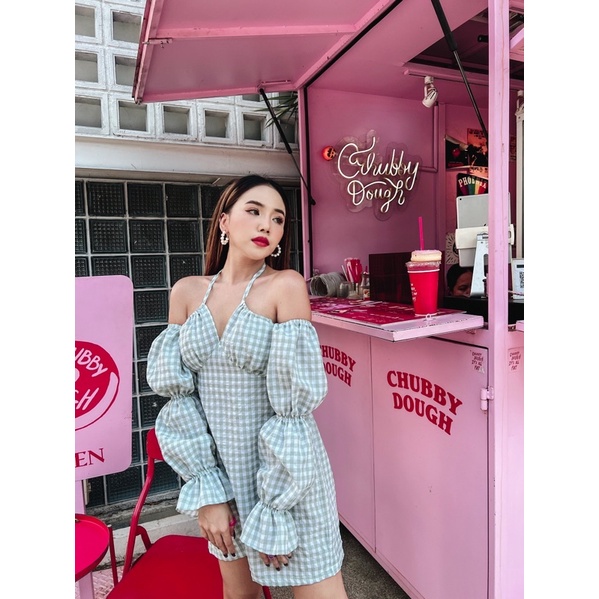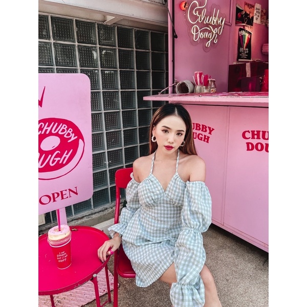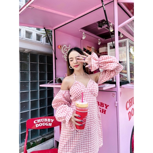 เดรสคิ้วๆรับซัมเมอร์ คือน่าร๊ากมากๆๆ💗💚 ผ้าลายสก็อต เดรสผูกคอ แขนจั๊มเหมือนตุ๊กตา