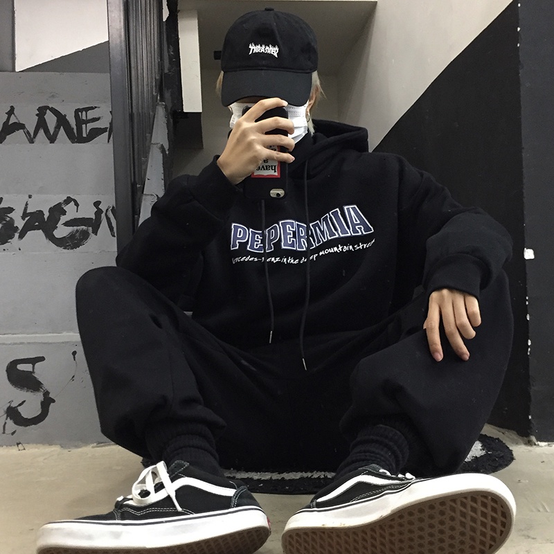 เกาหลี อินเทรนด์ที่สุด ลายตัวอักษร บวกกำมะหยี่ด้านใน เสื้อฮู้ด 2สไตล์ M~3XL