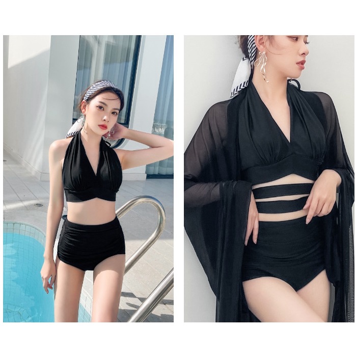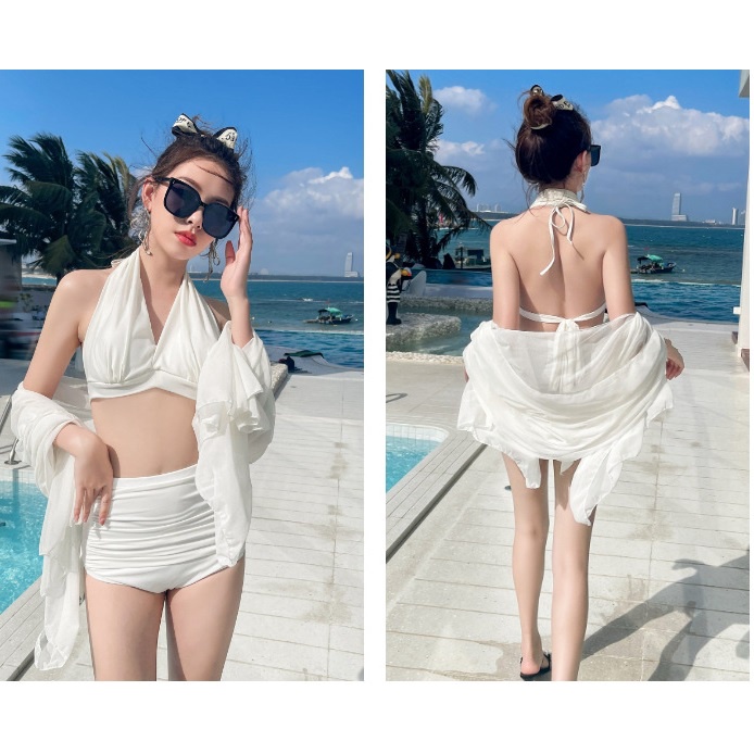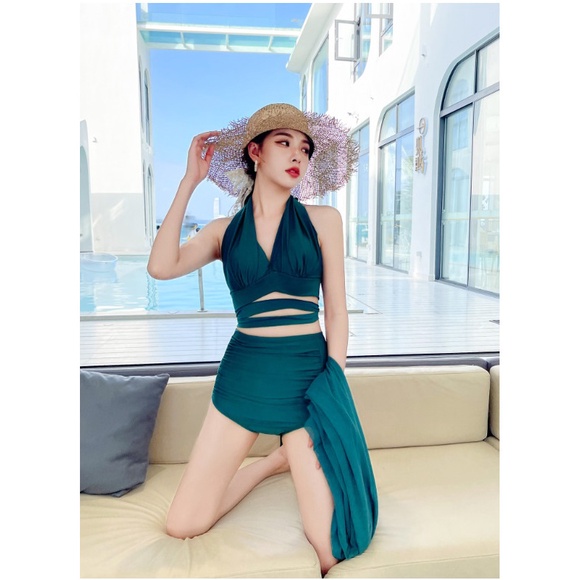 jqk ชุดว่ายน้ำแฟชั่นผู้หญิง เซ็ท 3 ชิ้น มีผ้าคลุมให้ด้วย(ดำ/ขาว/เขียว/หลือง) รุ่น0287