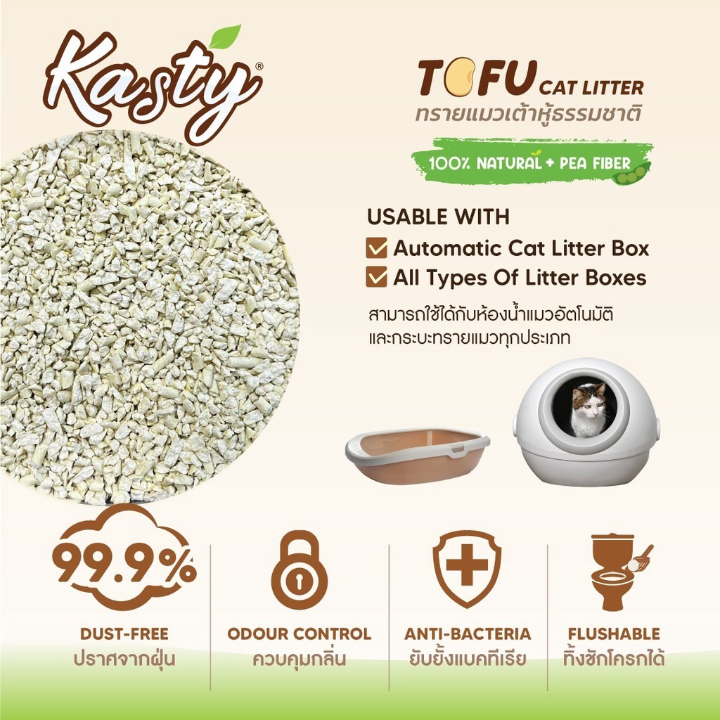 Kasty ทรายแมว เคสตี้ เต้าหู้ ถั่วลันเตา ขนาด 6 ลิตร