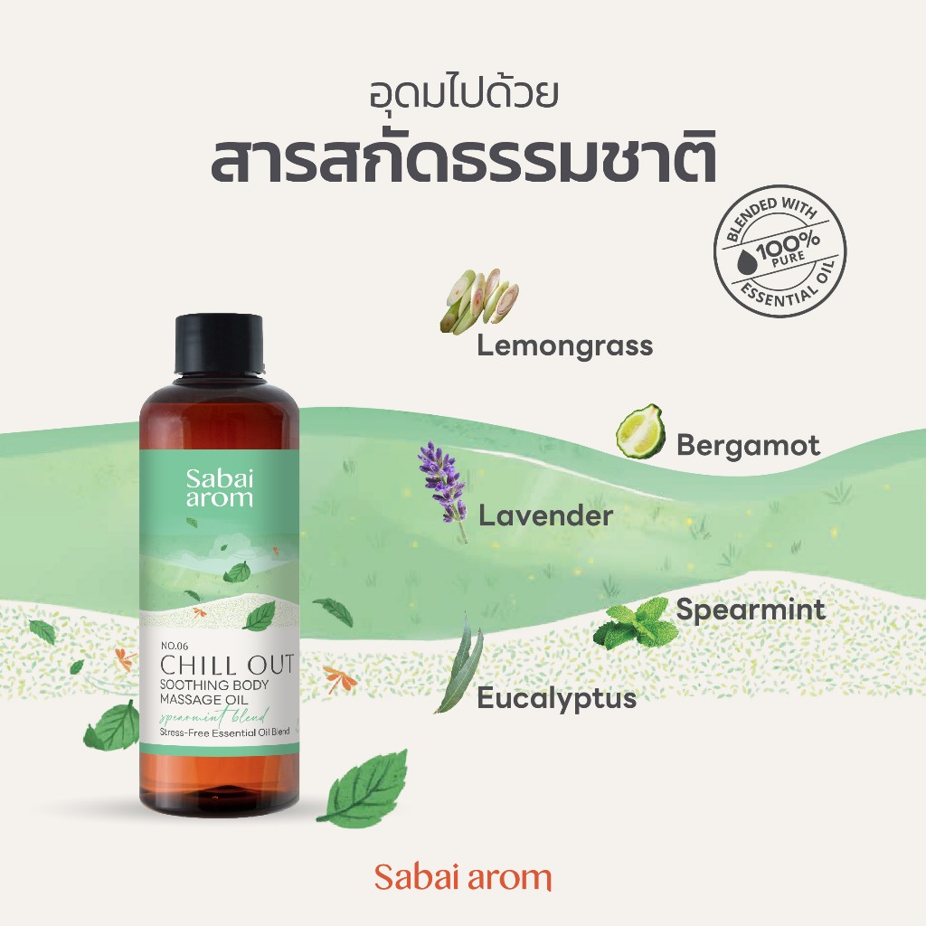 Sabaiarom Chill Out Soothing Body Massage Oil 200ml น้ำมันนวดอโรม่า น้ำมันสปานวดตัว แช่อาบน้ำ ผ่อนคลาย ความเหนื่อยล้า