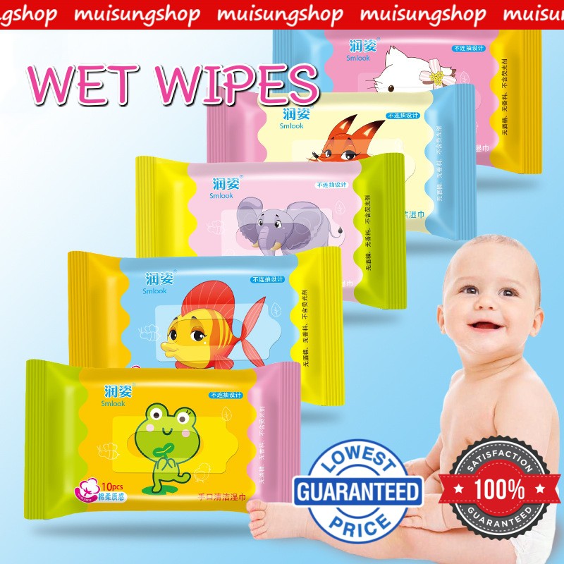 ทิชชู่เปียกสูตรน้ำ แพ๊ค 10 แผ่น ขนาดพกพา สำหรับเด็ก และผู้ใหญ่ By MUISUNGSHOP