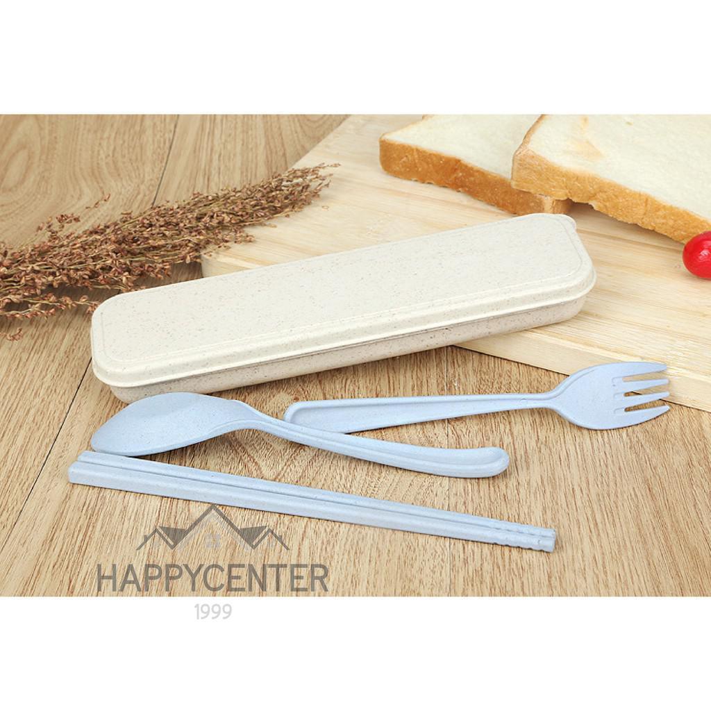 kingshopping ชุดช้อนส้อม+ตะเกียบ พร้อมกล่อง ใส่ขนาดพกพา แบบพกพา มี 4 สีให้เลือก A67 hc99
