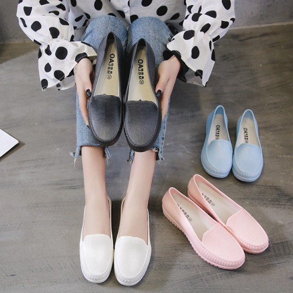 𝑳𝒂𝒆𝒊 𝒃𝒂𝒈&𝒔𝒉𝒐𝒆𝒔👠 รองเท้ายางนิ่มแฟชั่น ทรงหุ้มข้อ ส้นเตี้ย สีพื้น 4 สี