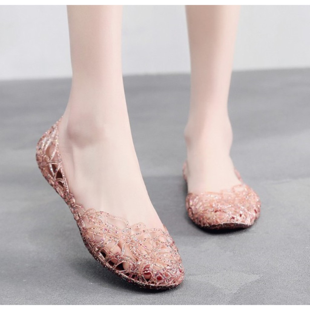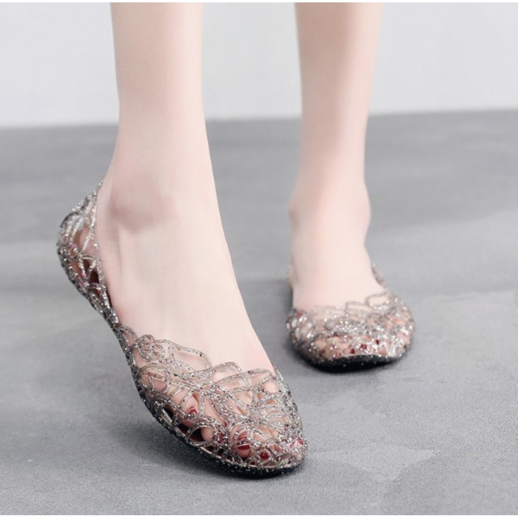 𝑳𝒂𝒆𝒊 𝒃𝒂𝒈&𝒔𝒉𝒐𝒆𝒔👠 รองเท้าส้นแบบ หุ้มส้น ฉลุลาย สีใสประกายเพชร