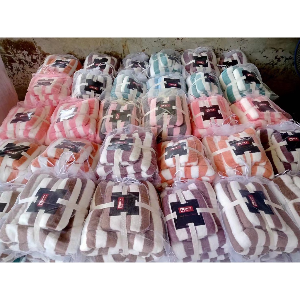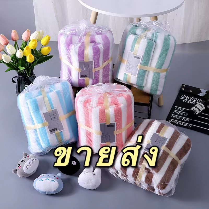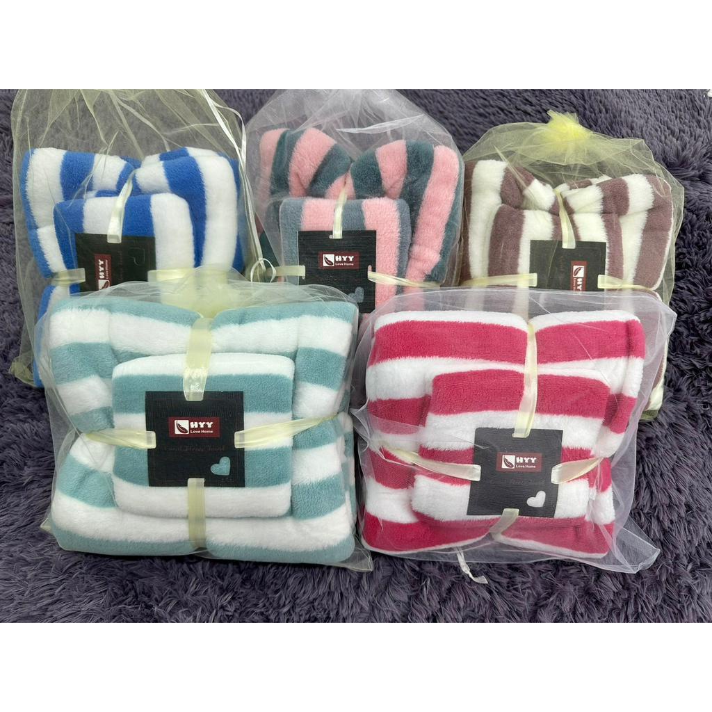 HYYถุงผ้าแก้ว!✨เซตลายขวาง เซตรังผึ้ง เซตสีพื้น เซตผ้าเช็ดตัวขนเป็ด2ชิ้น [ผ้าเช็ดตัว+ผ้าเช็ดผม] ของรับไหว้ ของขวัญ