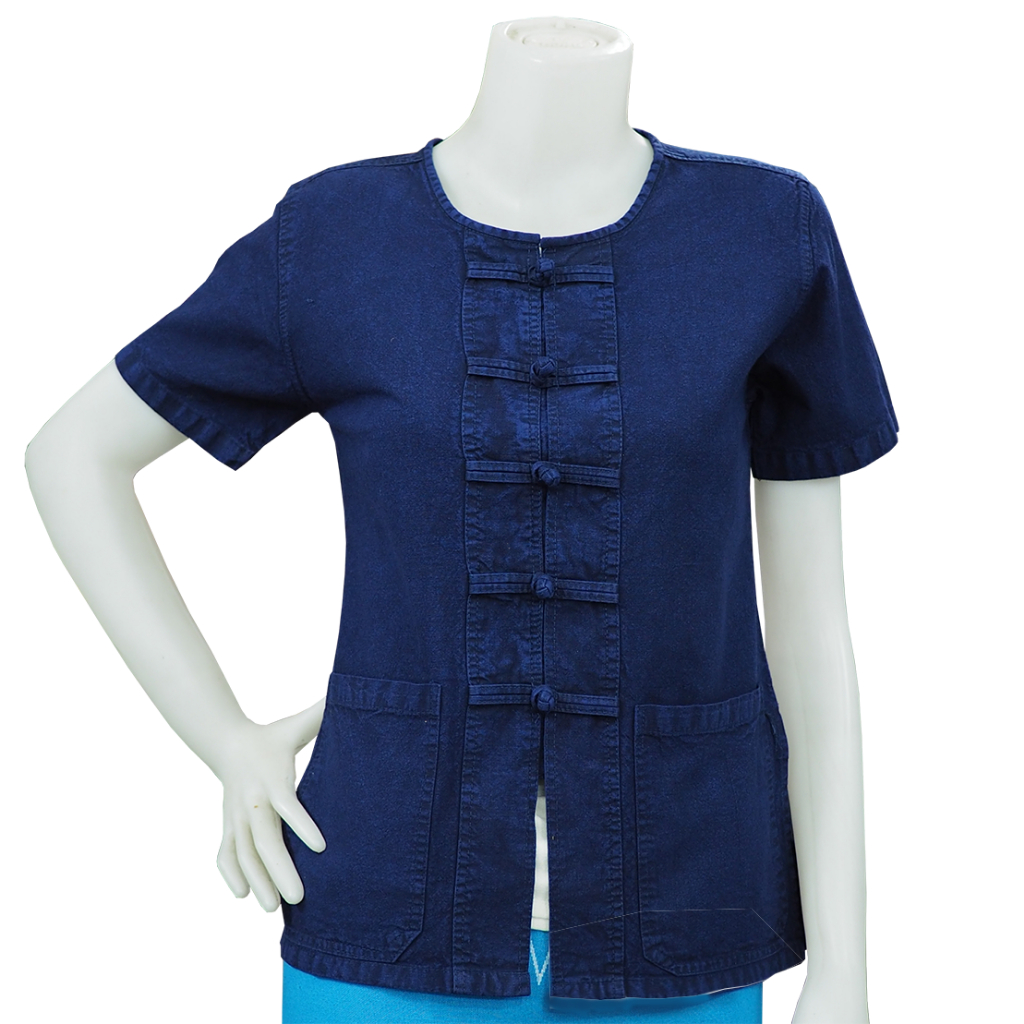 ( เราใส่ใจที่คุณภาพ ) เสื้อหม้อฮ่อม คอกลมกระดุมจีน เข้ารูปหญิง (ม่อฮ่อมแท้ , ม่อฮ่อมหญิง , ม่อฮ่อมเข้ารูป)