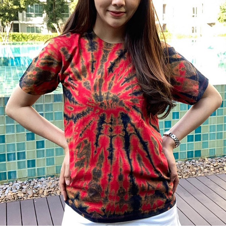 เสื้อยืด มัดย้อม กัดลาย ผ้า cotton แท้ 100% ( เนื้อผ้าดีเย็บสวยใส่แล้วไม่ยาน คุ้มค่า สมราคา )