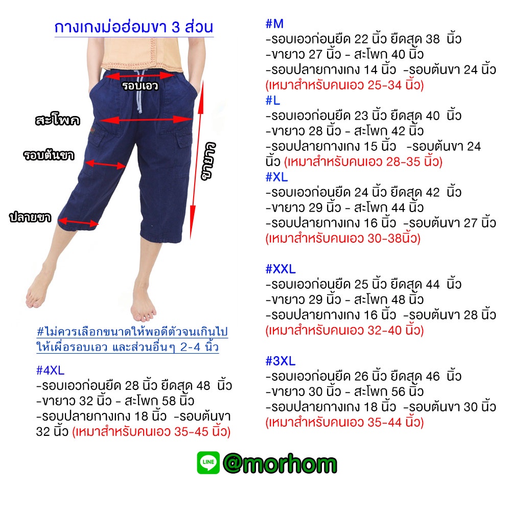 กางเกงหม้อฮ่อมแท้ เอวยางยืด ขา 3 ส่วน มีกระเป๋า 4 ใบ