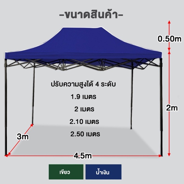 🔥ช้อปดีมีคืน🔥เต็นท์ 3x4.5m ปรับความสูงได้ เต็นท์ขายของ กันแดด เต็นท์จอดรถ เต็นท์พับ เต็นท์ตลาดนัด