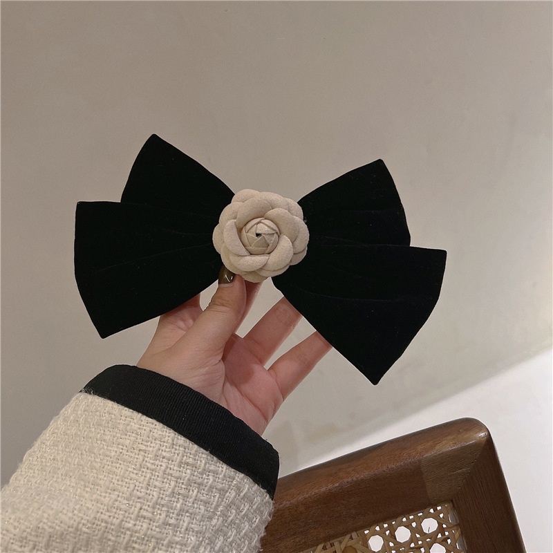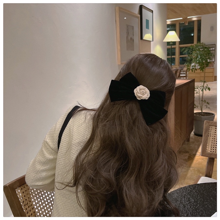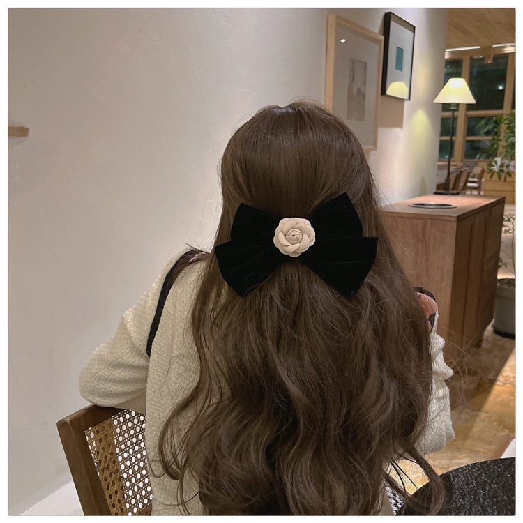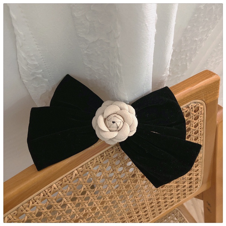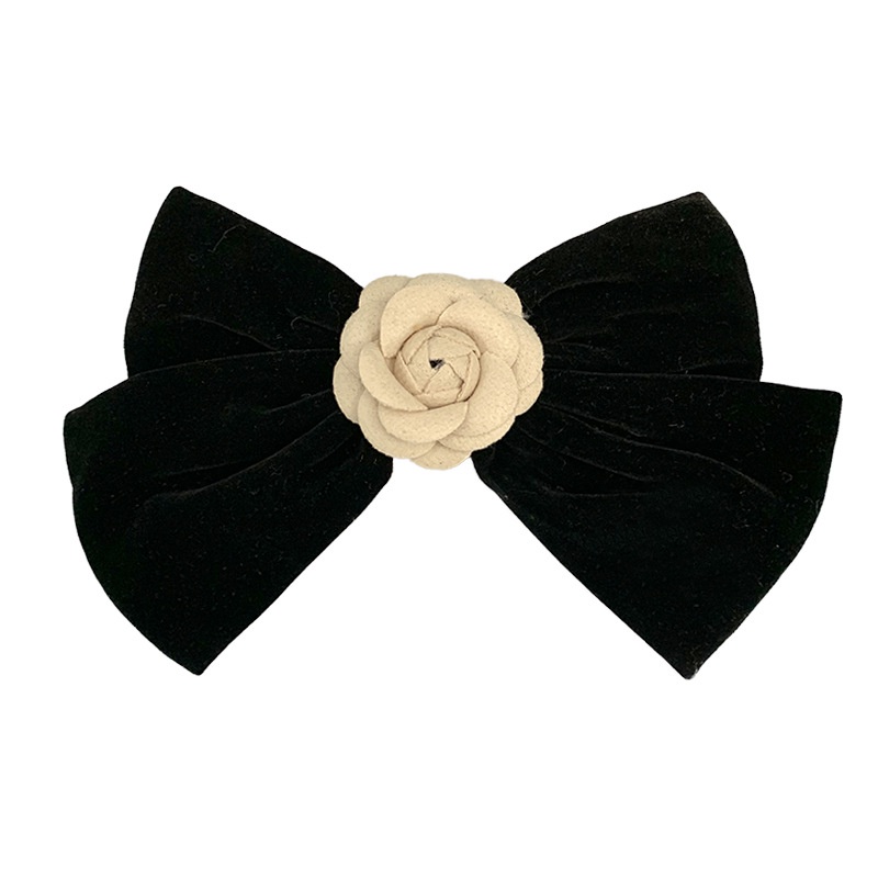 กิ๊บติดผมกำมะหยี่สไตล์วินเทจ สีดำ โบว์ติดผม