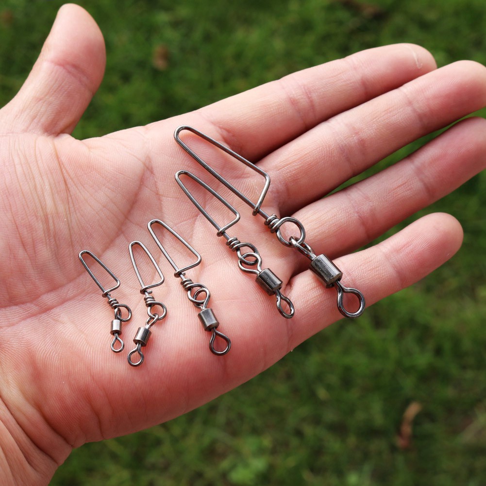Sougayilang 10 ชิ้น Kili-Kili อุปกรณ์ตกปลา หมุนได้ พร้อมสแน็ปล็อค สเตนเลส สีดํา นิกเกิล ตกปลา ขั้ว: ขนาด 4# 50lb-10 ชิ้น