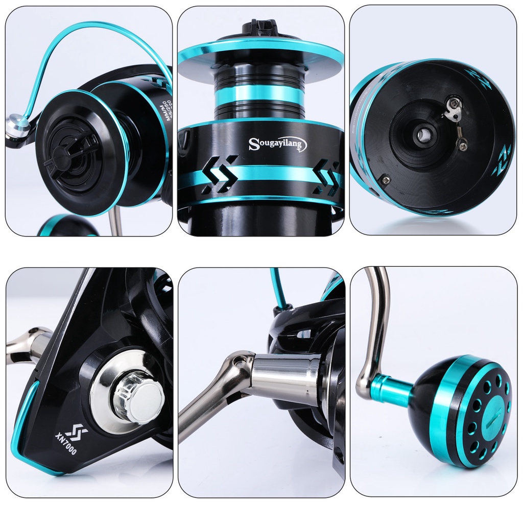 Sougayilang รอกตกปลา ด้ามจับโลหะ รอกหมุน 2000-7000 รอกหมุน รอกตกปลา ลวดอลูมิเนียม รอกหมุนได้ถึง 15 กก.