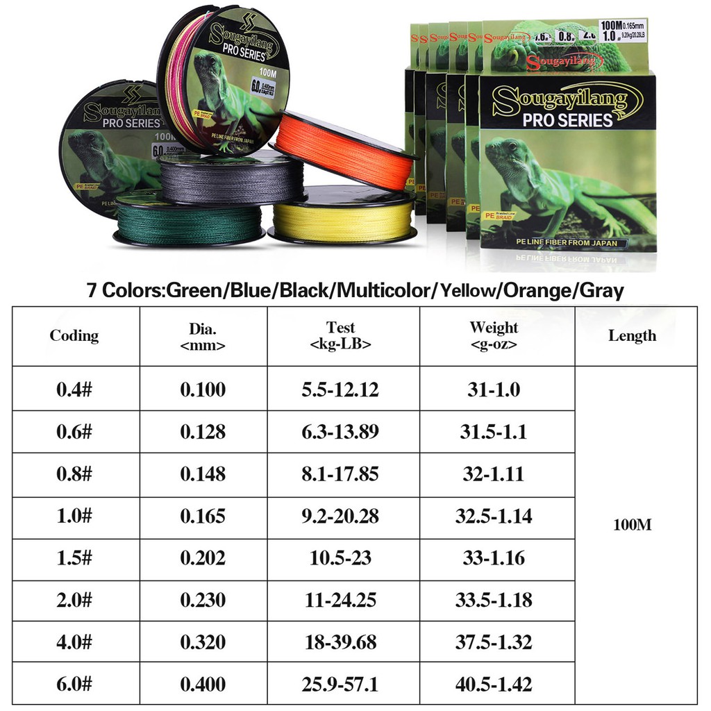 Sougayilang สายเบ็ดตกปลา pe 12.12-57.1 ปอนด์ 100 ม. 6.3 กก. -1 กก.