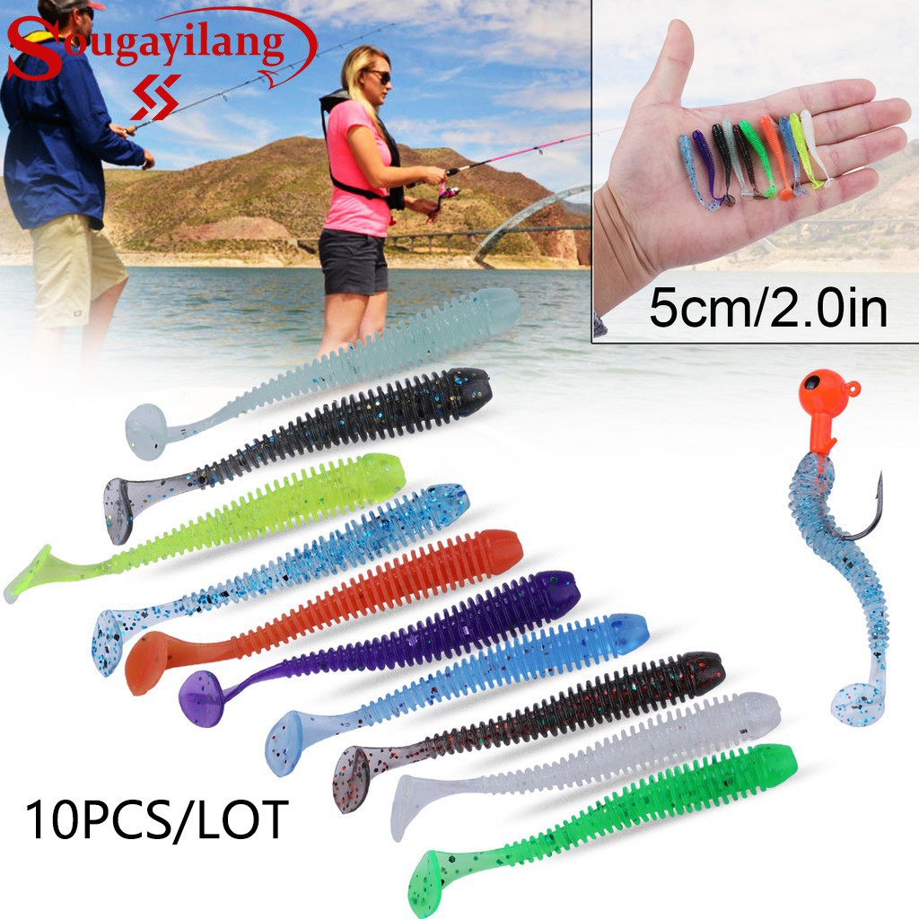 Sougayilang เหยื่อตกปลา ซิลิโคน 5 ซม. 10 ชิ้น