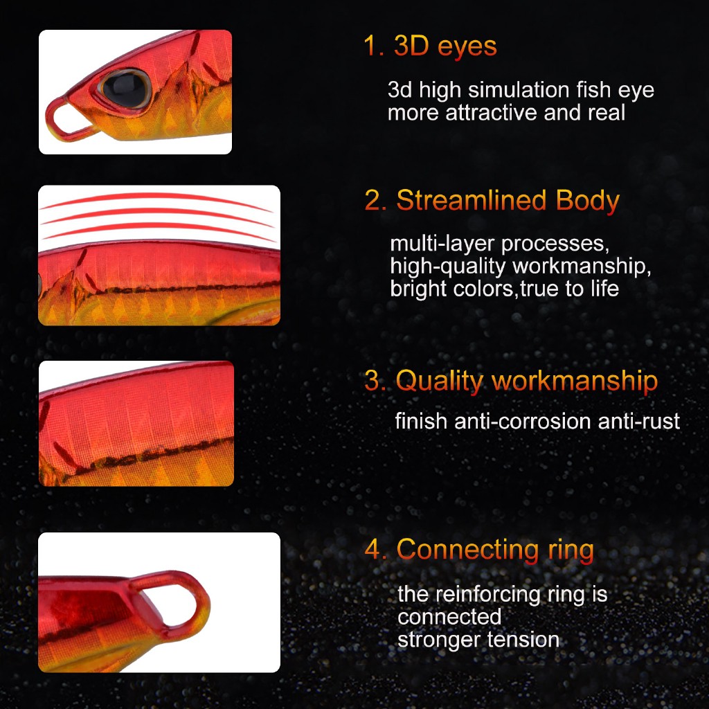 Sougayilang เหยื่อตกปลา แบบโลหะ 3 มิติ ขนาด 10, 15, 30, 40 กรัม