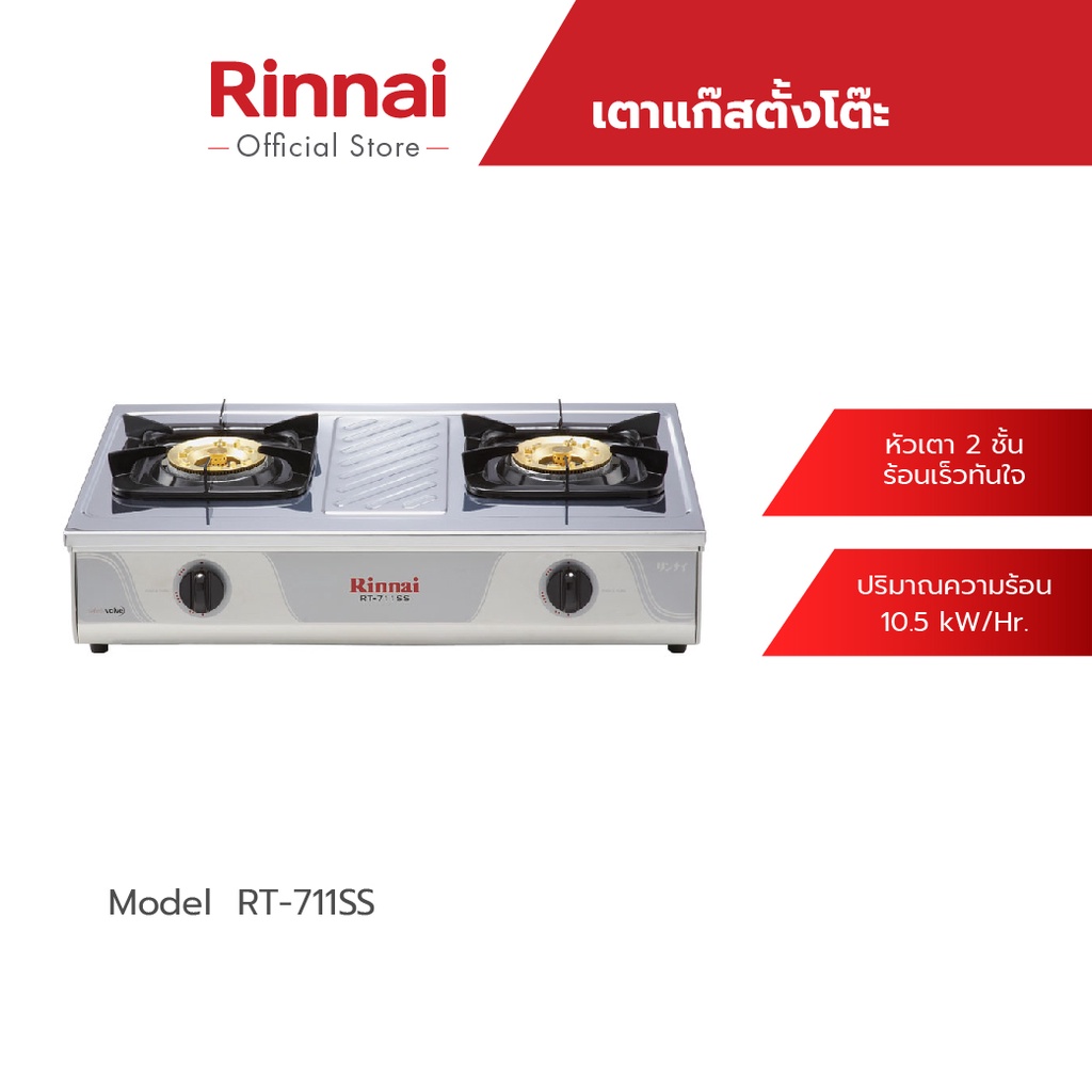 Rinnai เตาแก๊สตั้งโต๊ะ 2 หัว รุ่น RT-711SS หัวเตาทองเหลือง เตาแก๊สสแตนเลสทั้งตัว