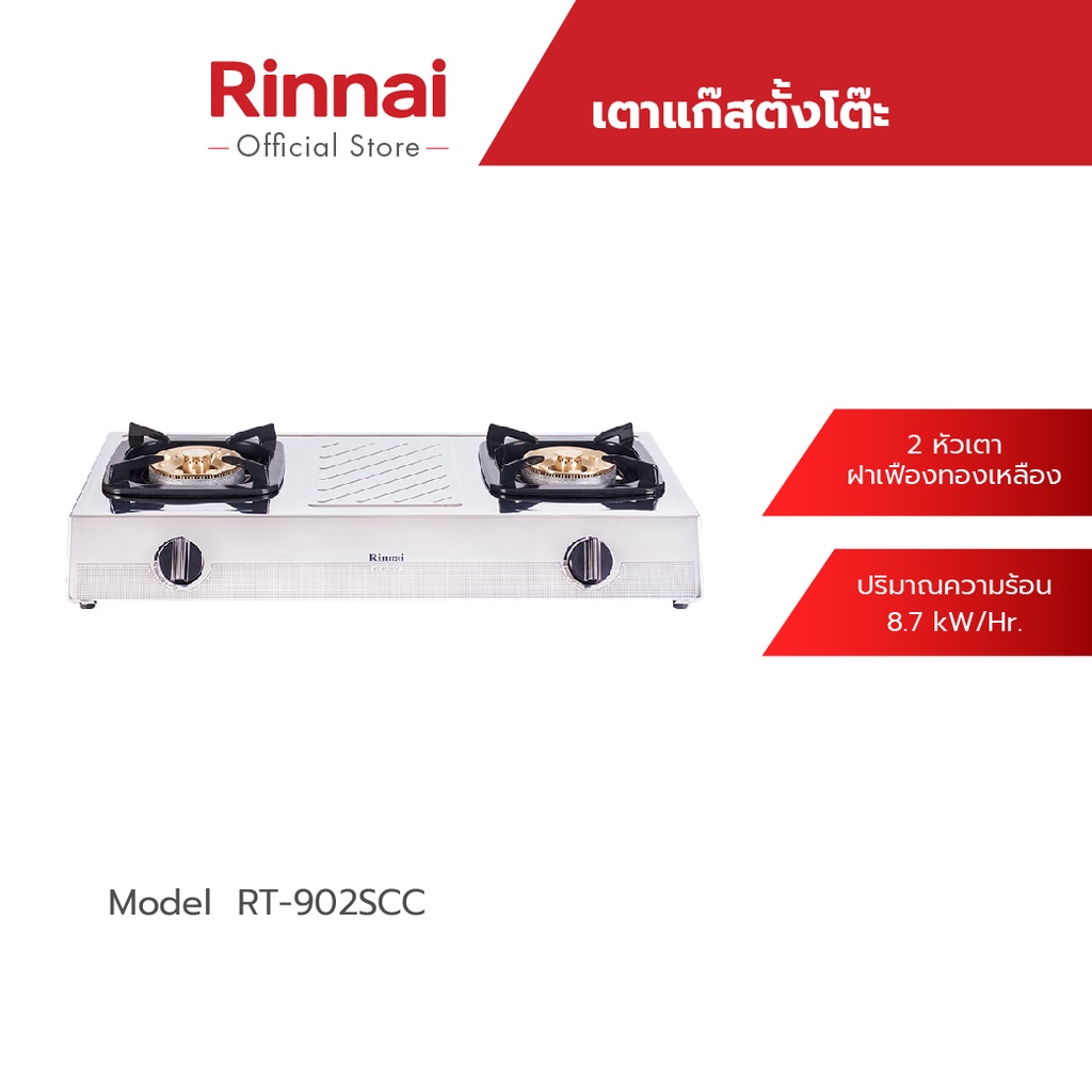 Rinnai เตาแก๊สตั้งโต๊ะ 2 หัว รุ่น RT-902SCC โครงสร้างสเตนเลสทั้งตัว รับประกันวาล์วแก๊ส 5 ปี