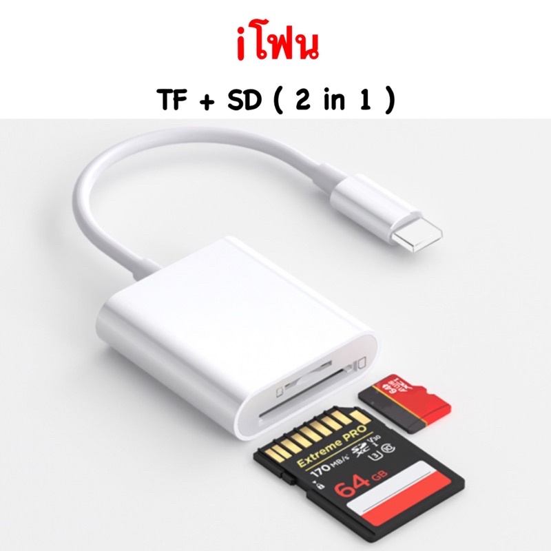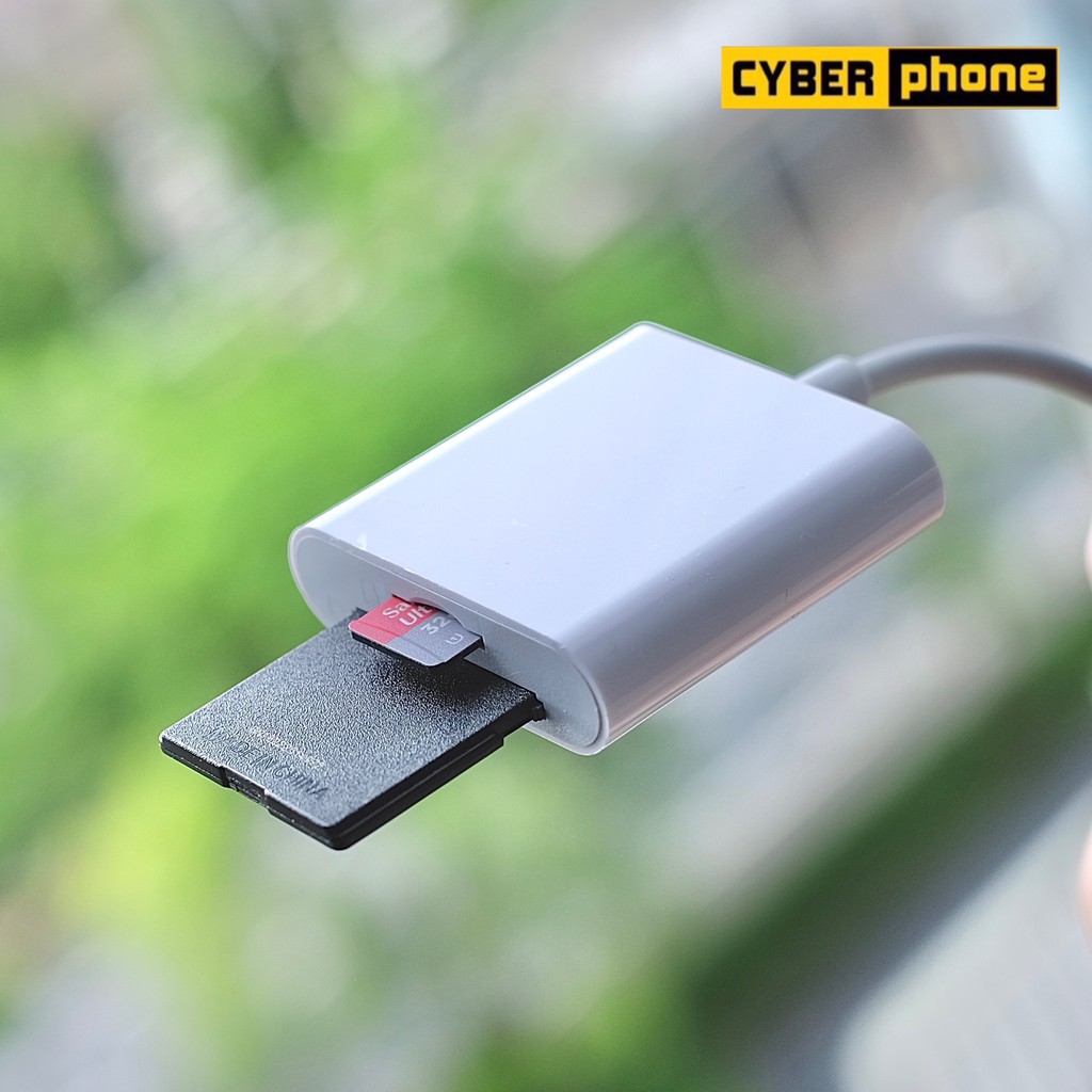 Adapter ย้ายรูปเข้ามือถือ IP / USB-C to SD Card Camera Reader 2 in 1 OTG ( photo Micro TF Video MicroSD ) ( Cyberphone )