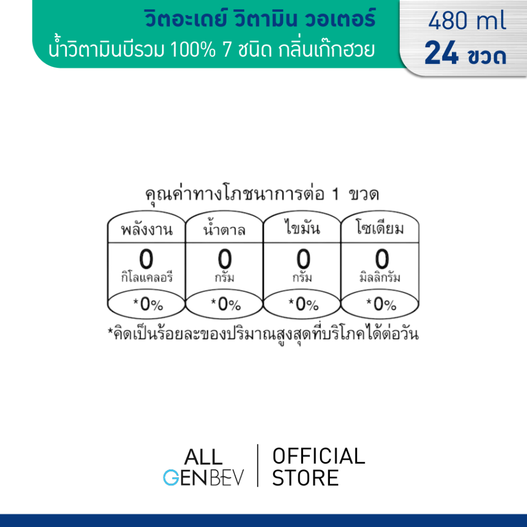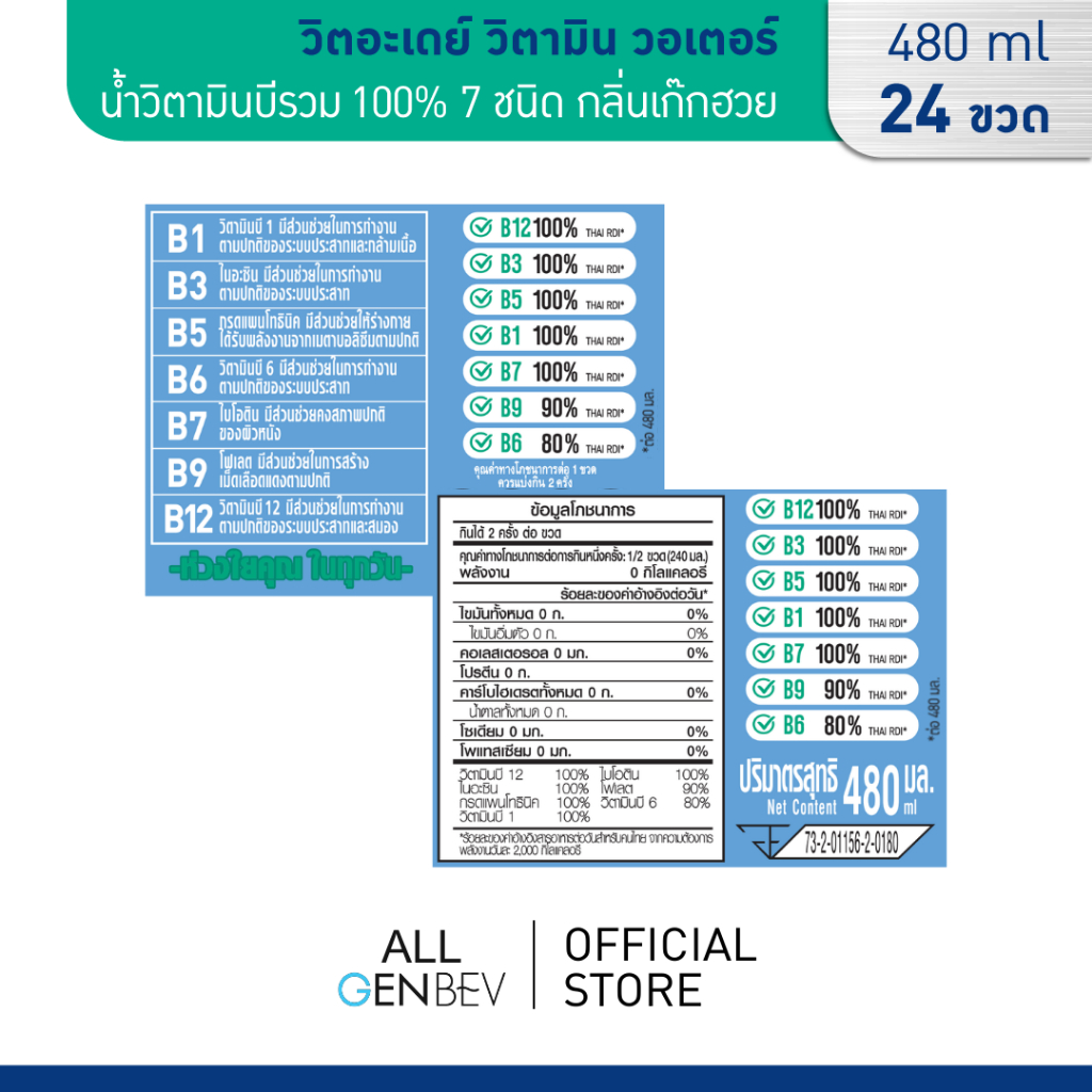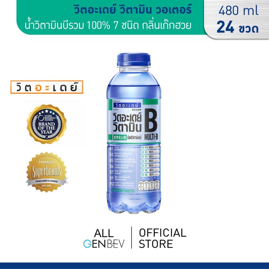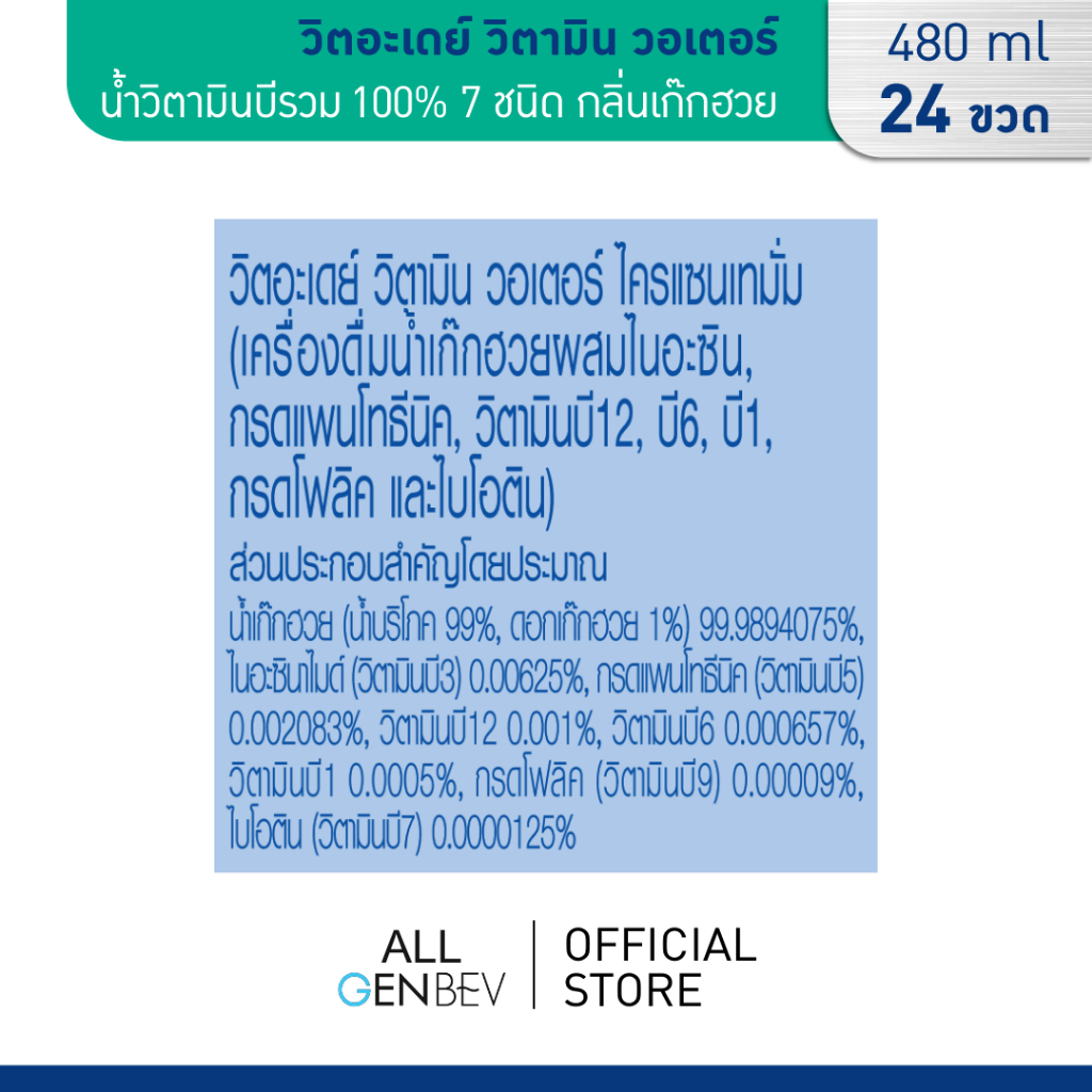 VITADAY วิตอะเดย์ วิตามิน วอเตอร์ - น้ำวิตามินบีรวม 100% 7 ชนิด กลิ่นเก๊กฮวย 480 ml x 24 ขวด