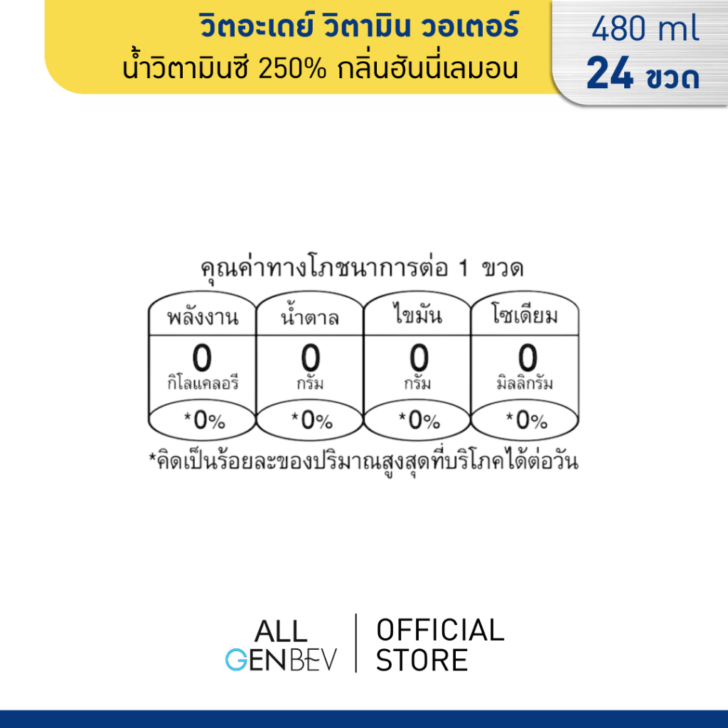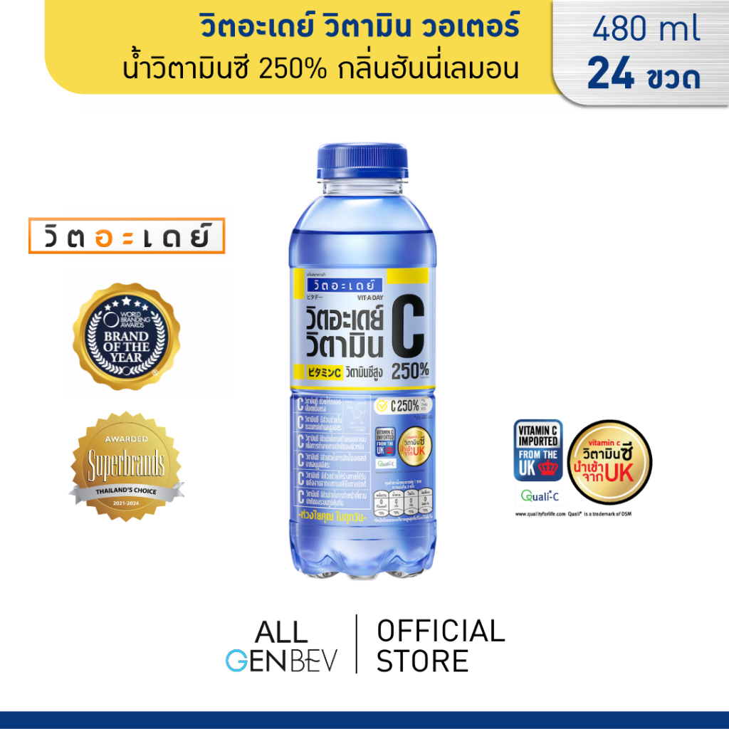 VITADAY วิตอะเดย์ วิตามิน วอเตอร์ น้ำวิตามินซี 250% กลิ่นฮันนี่เลมอน 480 ml x 24 ขวด