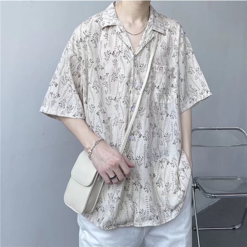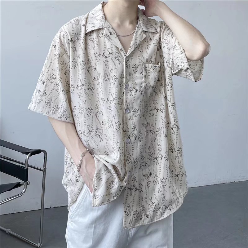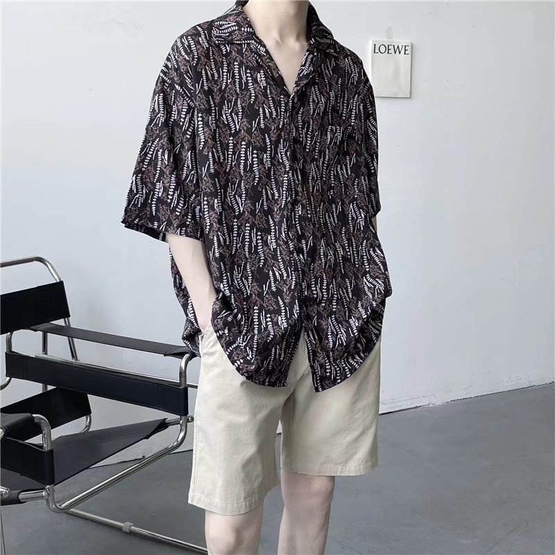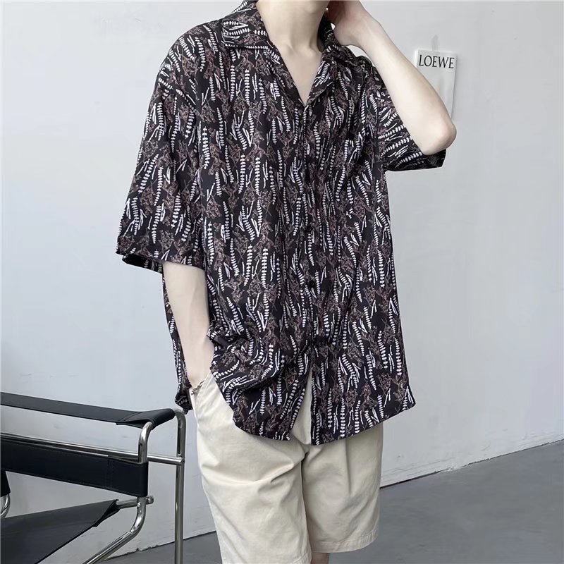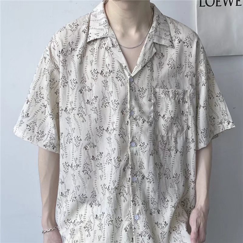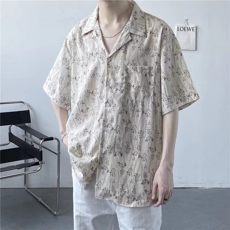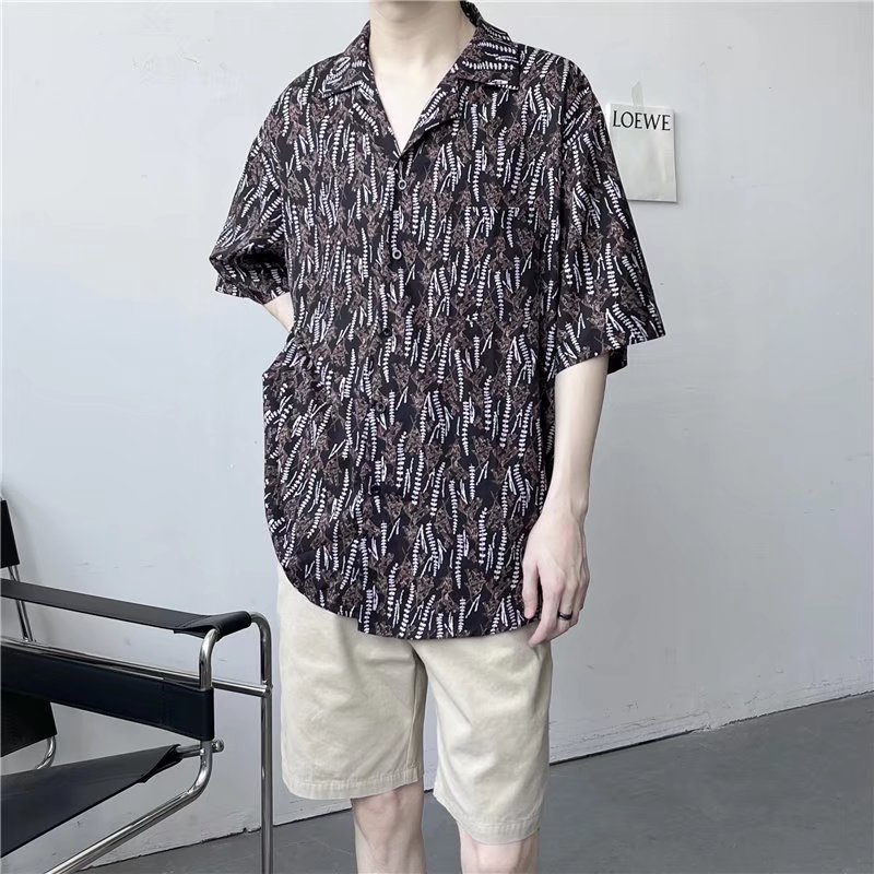 เสื้อเชิ้ตแขนสั้นลําลอง ทรงหลวม สไตล์ฮาวาย ฮ่องกง เรโทร สําหรับผู้ชาย [M-3XL]