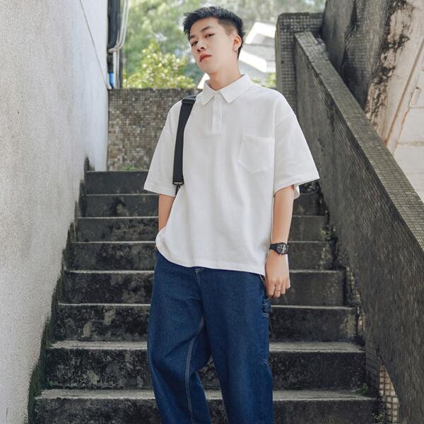 เสื้อโปโล คอปก ทรงโอเวอร์ไซซ์ สไตล์เกาหลี สำหรับผู้ชายและผู้หญิง