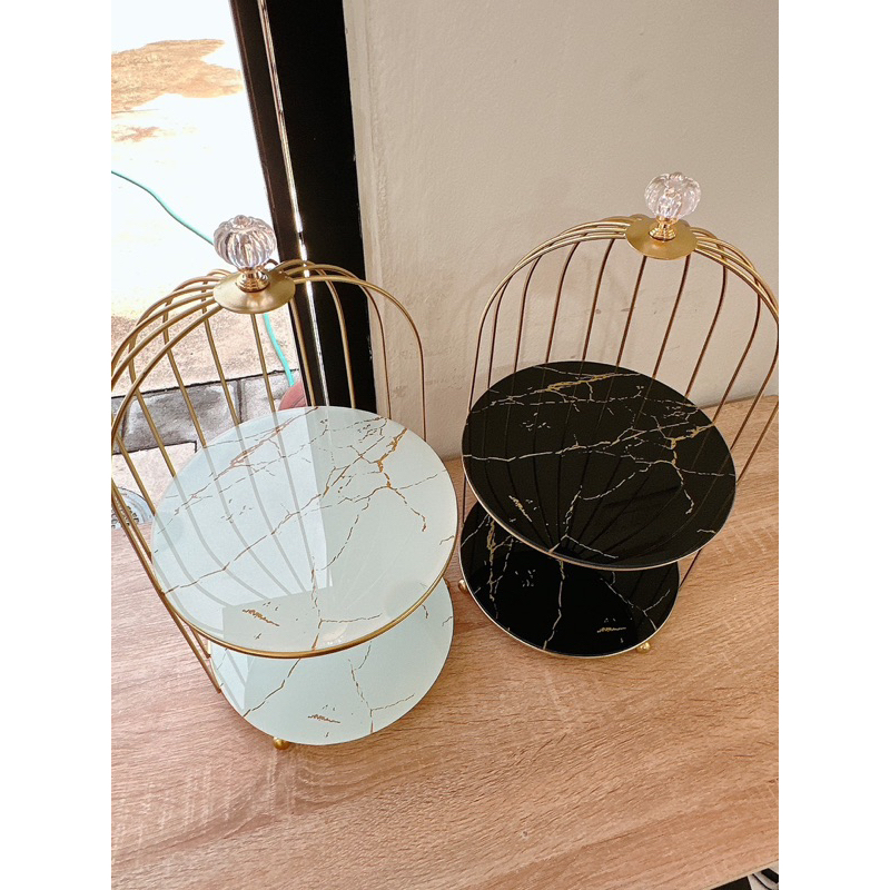 AC26-9 ชั้นวางสองชั้นขาวดำทรงสี่เหลี่ยมขอบทอง!! [12] J16-1