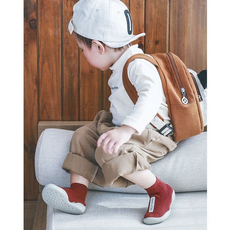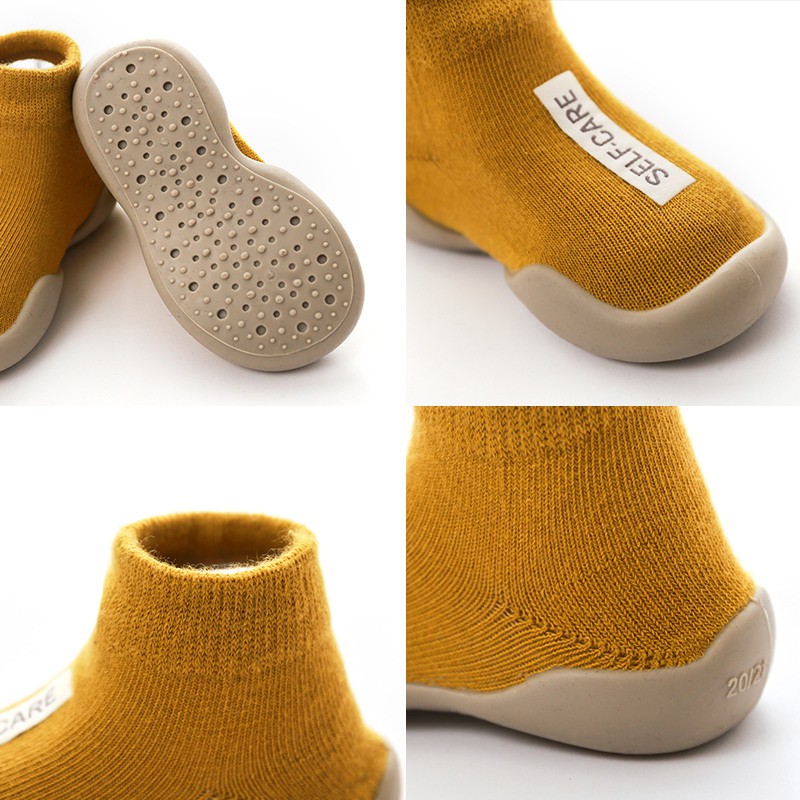 รองเท้าเด็ก รองเท้าหัดเดิน “ถุงเท้าหัดเดิน” พื้นซิลิโคนกันลื่น 5สีสดใส แดง,เหลือง,น้ำตาล,เทา,ดำ A1