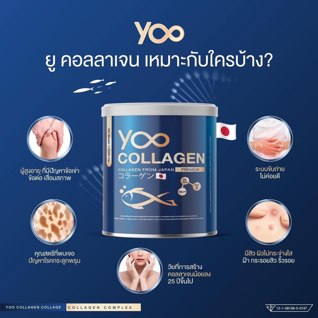 Yoo Collagen Di-Peptide+Tri-Peptide+HACP+Type II คอลลาเจนบริสุทธิ์จากประเทศญี่ปุ่น 110,000 mg. (110 กรัม x 1 กระป๋อง)