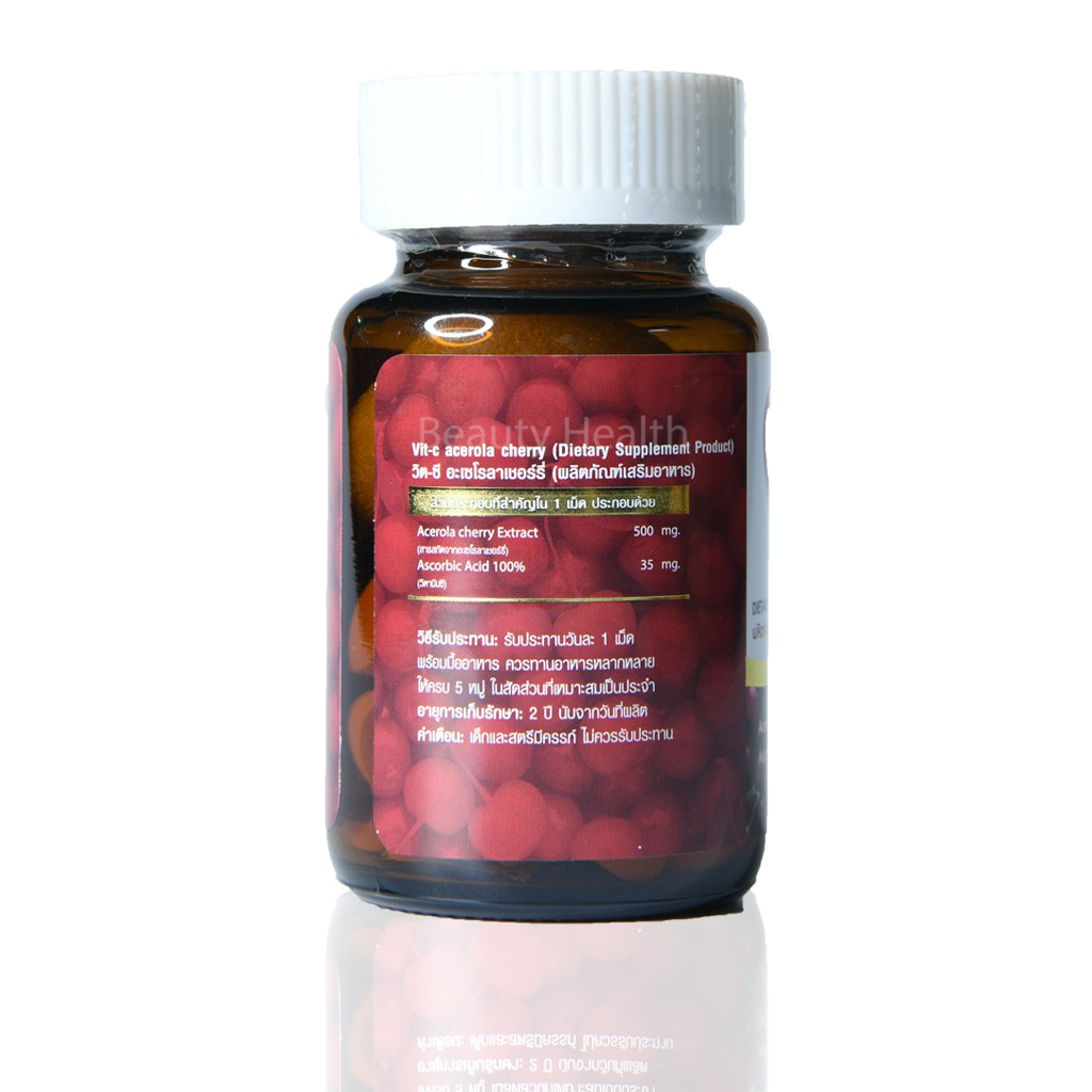 Vit-C+ Acerola Cherry 500 mg.วิต-ซีพลัส อะเซโรลา เชอร์รี่ (30 เม็ด x 1 กระปุก)