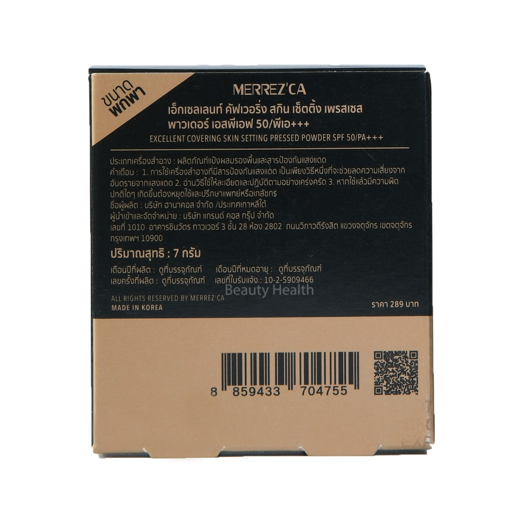 Merrezca Excellent Covering Skin Setting Pressed Powder SPF 50 / PA+++ แป้งพัฟกันน้ำ ขนาดพกพา (7 กรัม x 1 ตลับ)