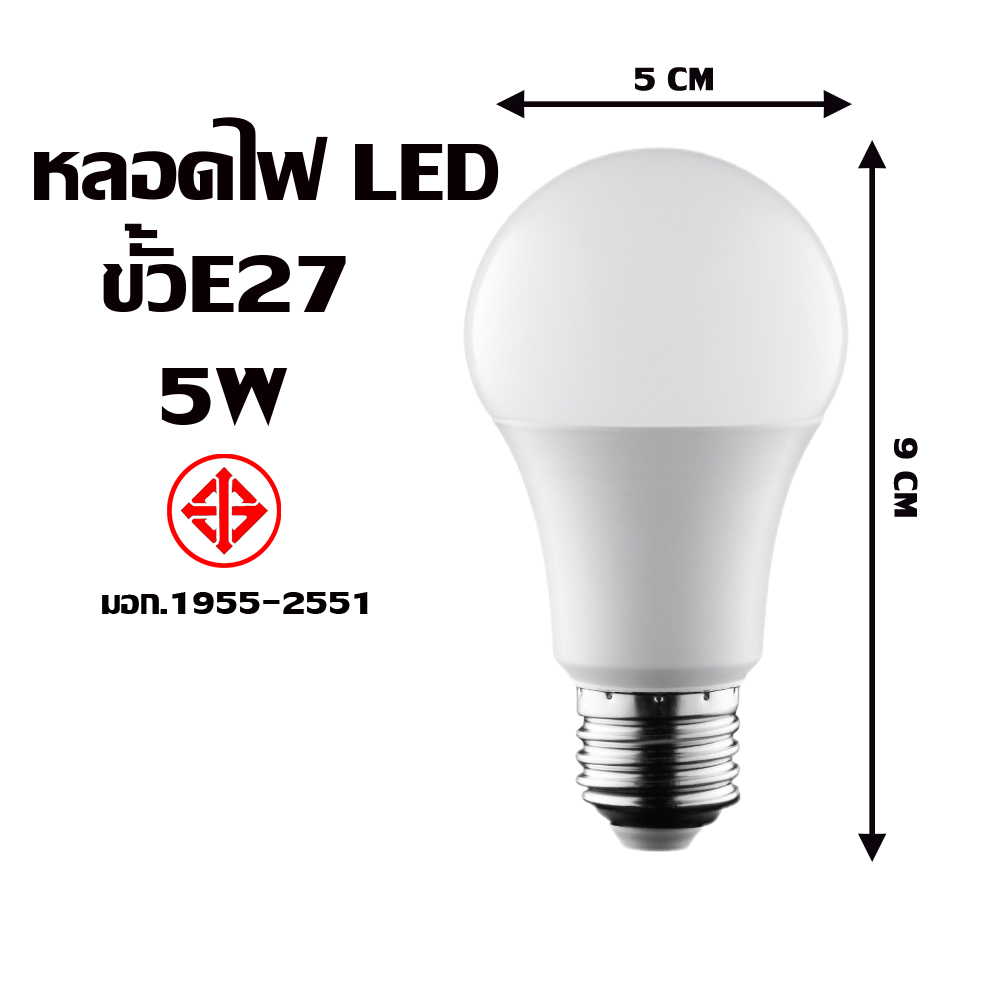 หลอดไฟภายในบ้าน หลอดปิงปอง LED แสงสีขาว ทรงกลมขั้ว E27 AC 220V~50Hz ST 3W 5W 7W 9W 12W 15W 18W 24W