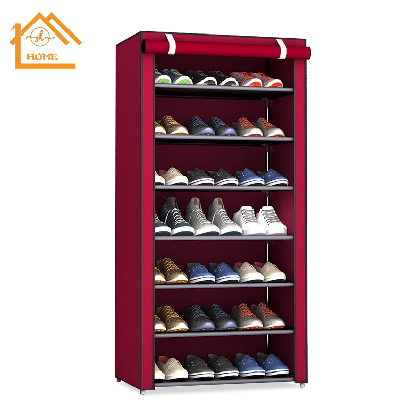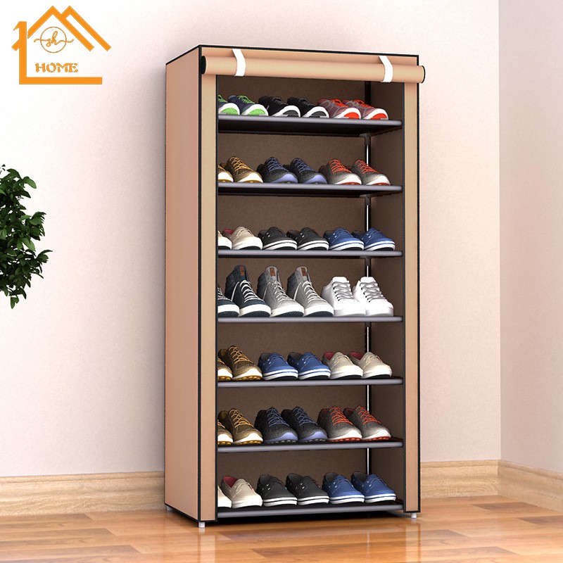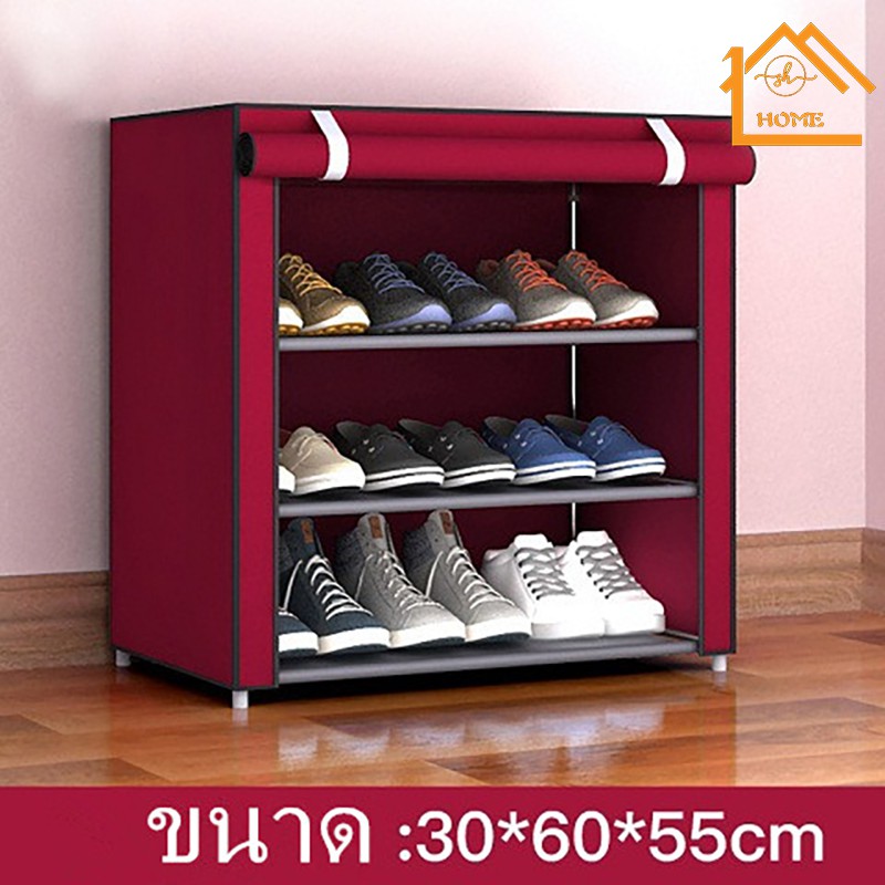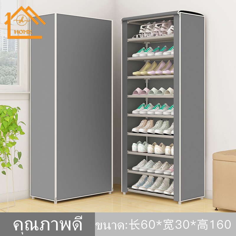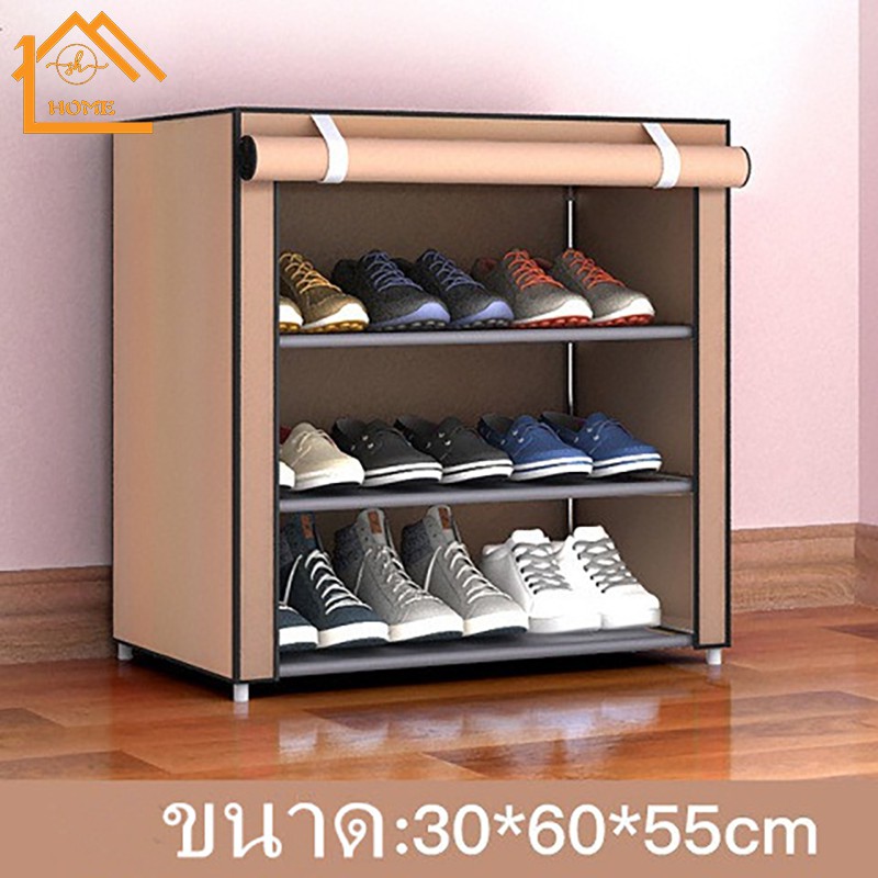 SHHOMEชั้นว างรองเท้า ตู้เก็บรองเท้า 3ชั้น จำนวน 9 คู่ ผ้าคลุม กันน้ำ กันฝุ่น พร้อมช่องเก็บของด้านข้าง ตู้ใส่รองเท้า ชั