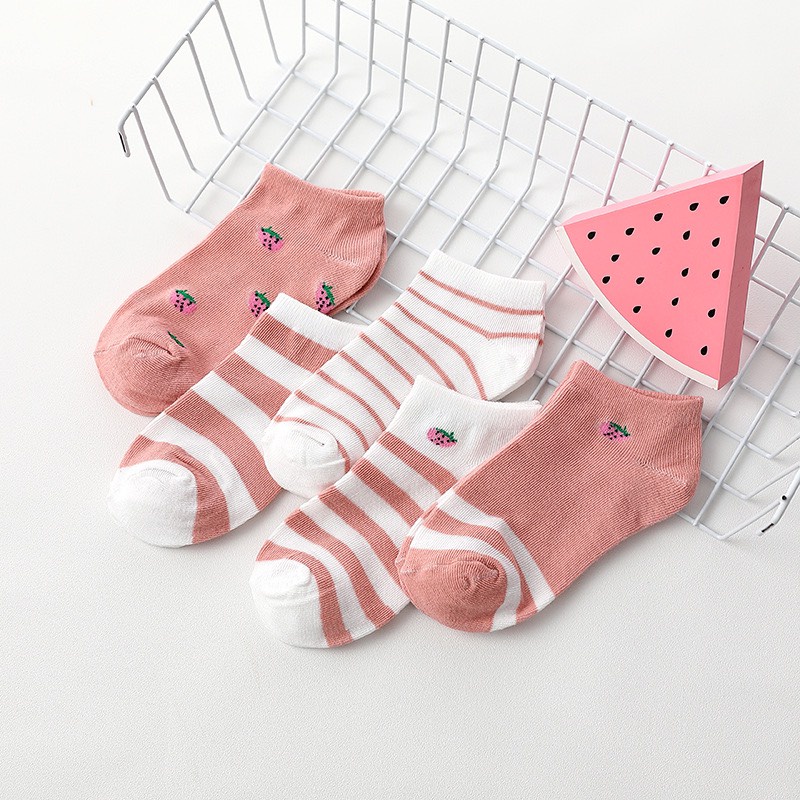 ถุงเท้าข้อสั้น 1 แพ็ค 10 คู่ ถุงเท้าแฟชั้น ลายดอกไม้
