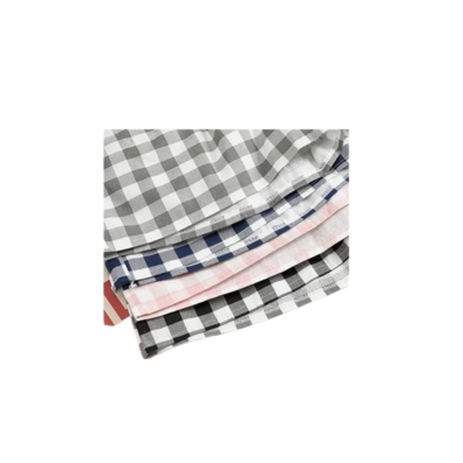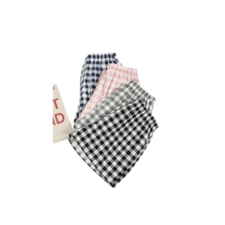 กางเกงผู้หญิง กางเกงขาสั้น ผ้าลินิน ผสมผ้าฝ้าย กางเกงวินเทจ สไตล์เกาหลี ใส่สบาย ขากว้าง ลายสก๊อต กระเป๋า 2 ข้าง