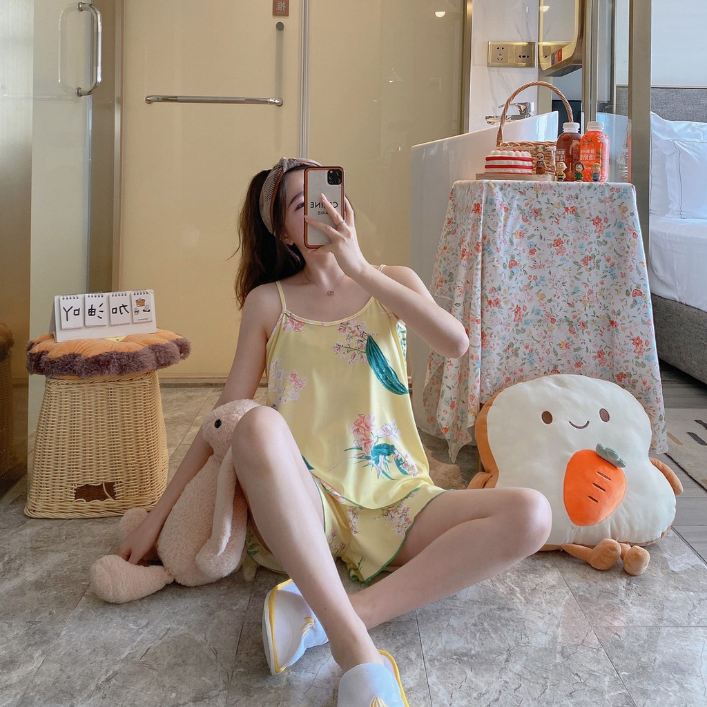 รหัส QB00 เซทชุดนอนมินิมอล เสื้อผ้าผู้หญิง เสื้อ+กางเกง ชุดนอนสายเดี่ยวลายน่ารัก
