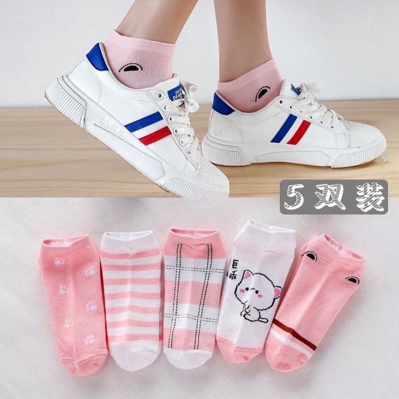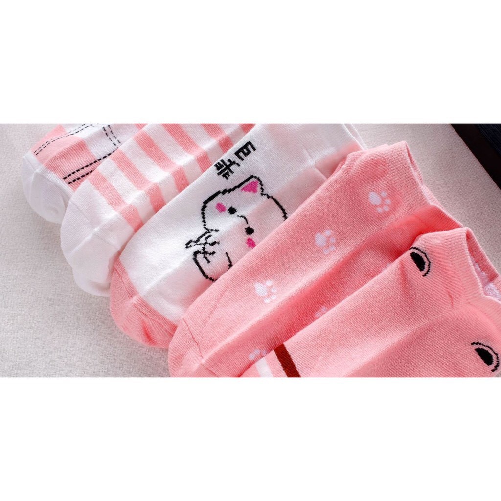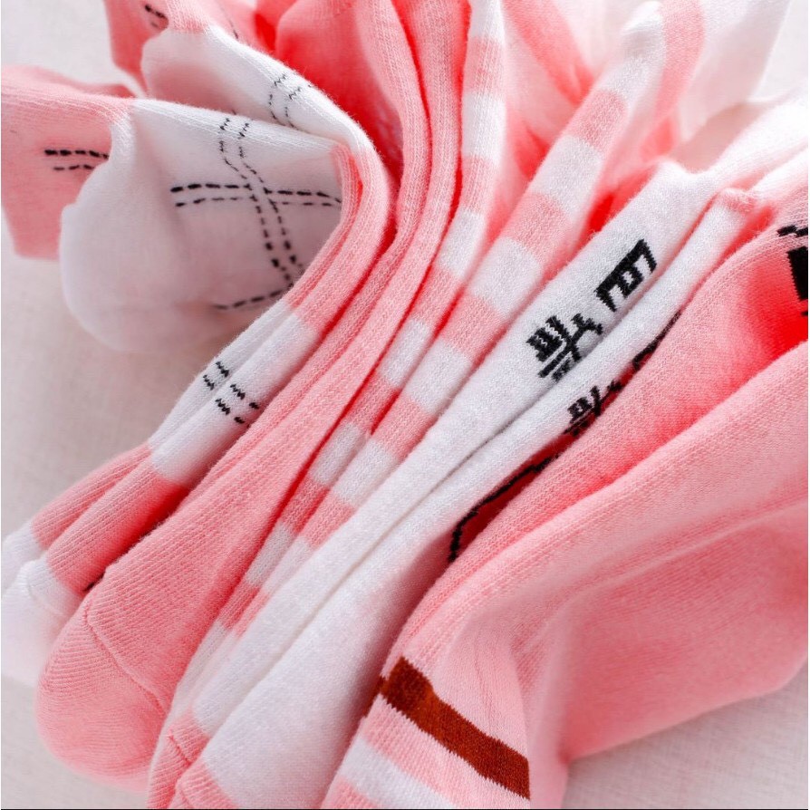 ถุงเท้าข้อสั้น 1แพค 10คู่ ลายแมวชมพู สีหนาวๆ น่ารัก สไตล์เกาหลี