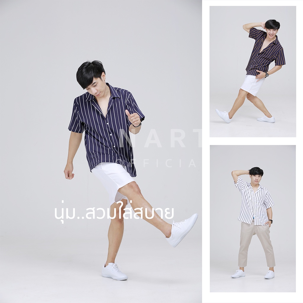 เสื้อเชิ้ต N-3 ลายทาง ริ้ว M-XXL ใส่ได้ชายหญิง เชิ้ตเกาหลี สินค้ามาใหม่ผ้านิ่มขึ้น